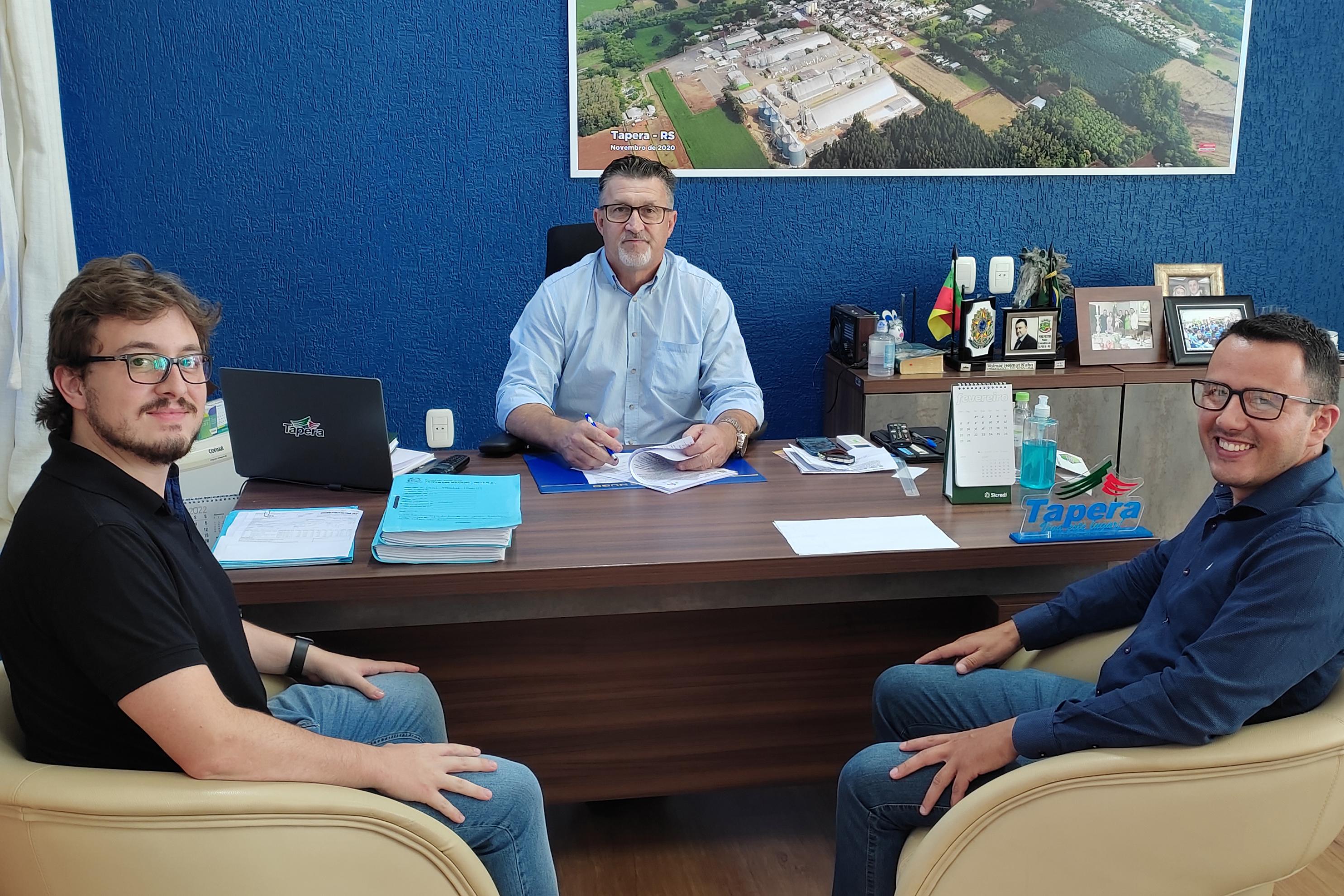 Ontem à tarde, 23/02, foi assinado o contrato para Coleta de Resíduos no município de Tapera. Participaram do ato o prefeito Volmar Helmut Kuhn, o secretário de Desenvolvimento Elias Goulart e o representante da Ecosul Coleta de Resíduos Ltda, Antônio Marco Duarte Borges.