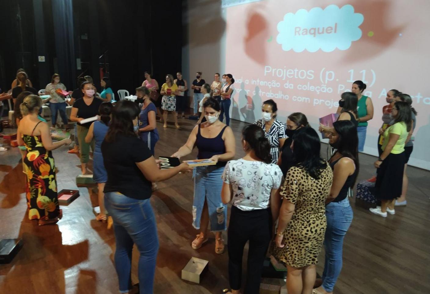 Durante o encontro, foram discutidos os fundamentos teóricos-metodológicos com o objetivo de definir a maneira como o livro didático será inserido na Educação Infantil. A coleção Porta Aberta possui propostas de atividades que auxiliam o professor na prática pedagógica, incentivando a forma lúdica, para que a criança aprenda brincando.