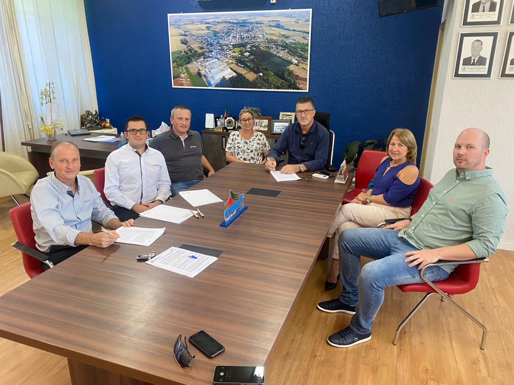 O acordo de cooperação entre a Administração Municipal de Tapera e a Cooperativa de Crédito Integração Rota das Terras- Sicredi foi assinado ontem, 28/03, no Centro Administrativo.
