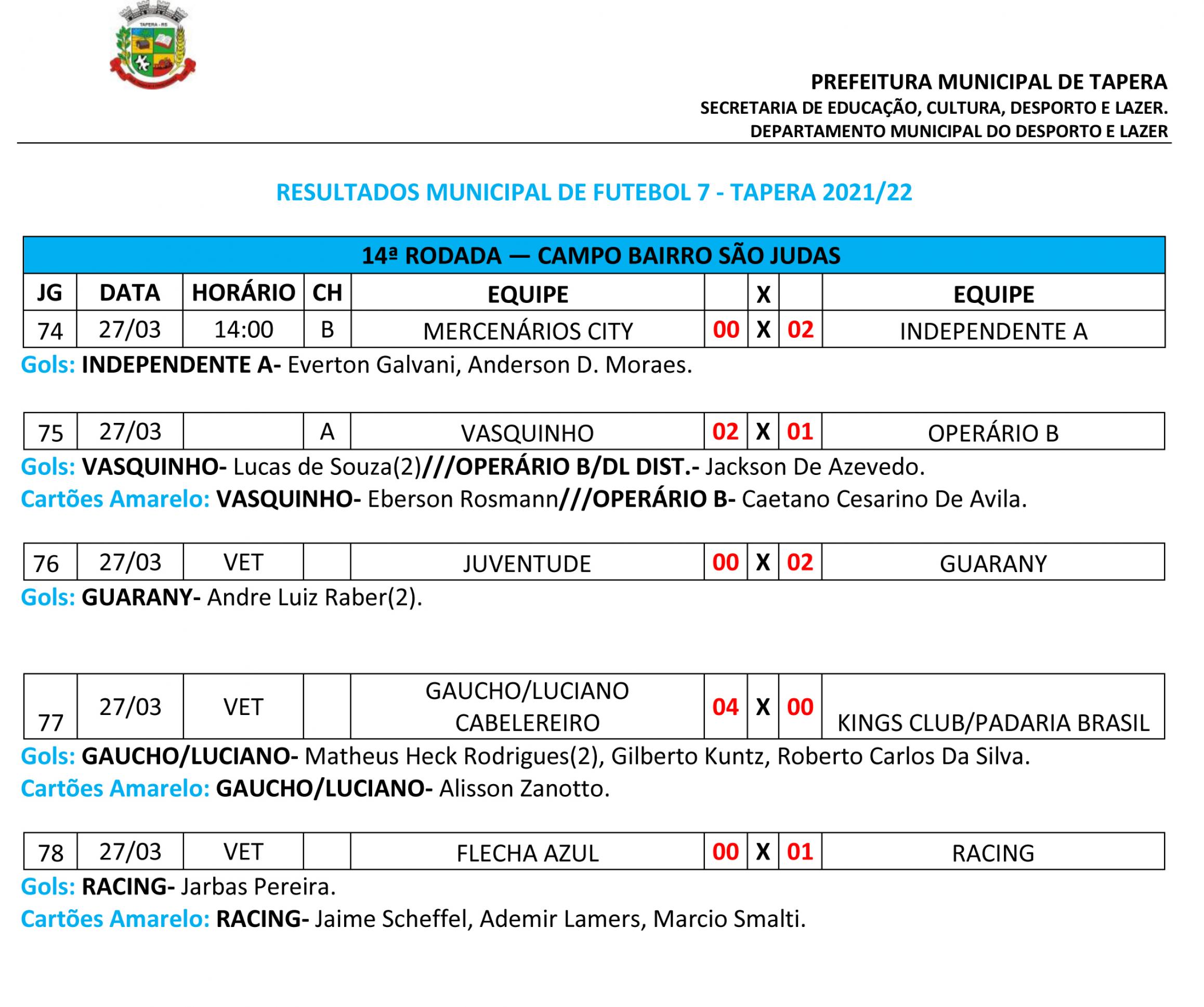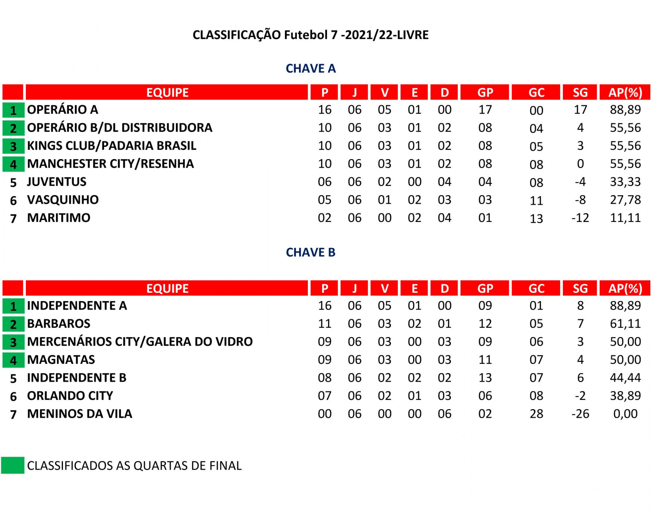 Na categoria LIVRE jogam: Operário B X Mercenários City/Galera Do Vidro; Bárbaros X Kings Club; Operário A X Magnatas; Independente A X Manchester City.