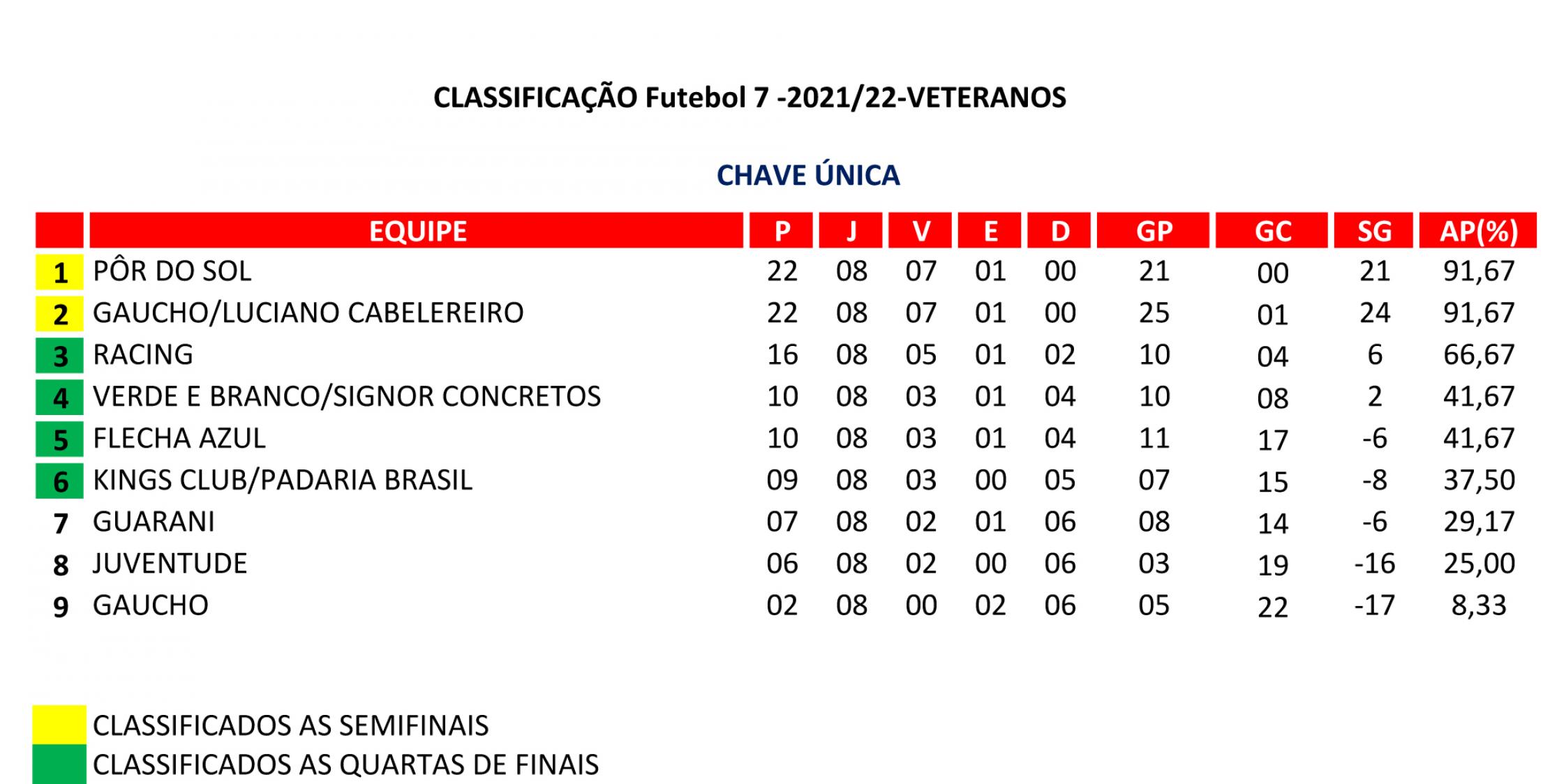 Na categoria VETERANOS se enfrentam: Verde Branco/Signor Concretos X Flecha Azul; Racing X Kings Club.