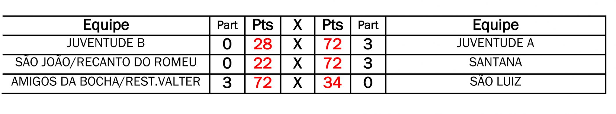 Na quinta-feira, São Luiz X São João/ Recanto do Romeu se enfrentam. Os demais jogos acontecem na sexta-feira, entre Santana X Grupo de Bocha São Pedro; Juventude B X Amigos da Bocha/ Restaurante Valter.