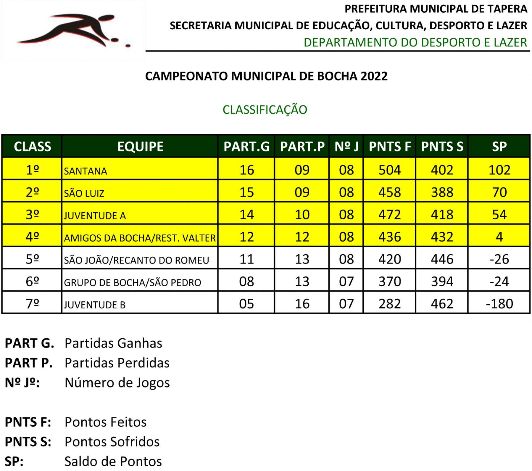 A 10ª rodada do Campeonato Municipal de Bocha será realizada nos dias 31/03 e 01/04, a partir das 19h45min.