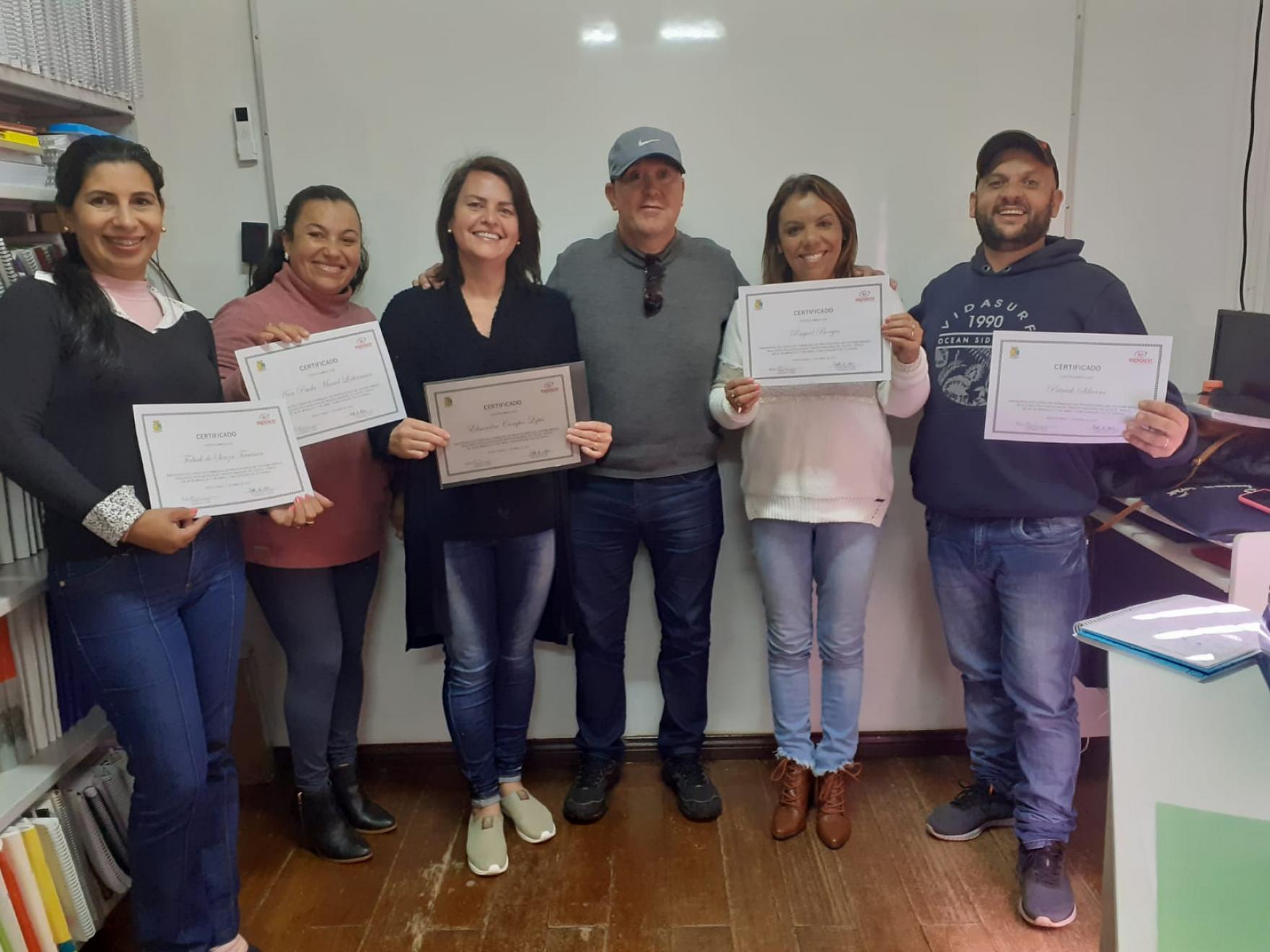Após quatro encontros, totalizando 20 horas de formação pedagógica, cinco profissionais da EMEF Presidente Costa e Silva receberam a certificação do Curso em Braile na sexta-feira passada (01/04). As aulas aconteceram na Associação Passofundense de Cegos(APACE) e foram ministradas pelo professor Everton de Souza, que é Deficiente Visual, graduado em Pedagogia e membro da APACE.