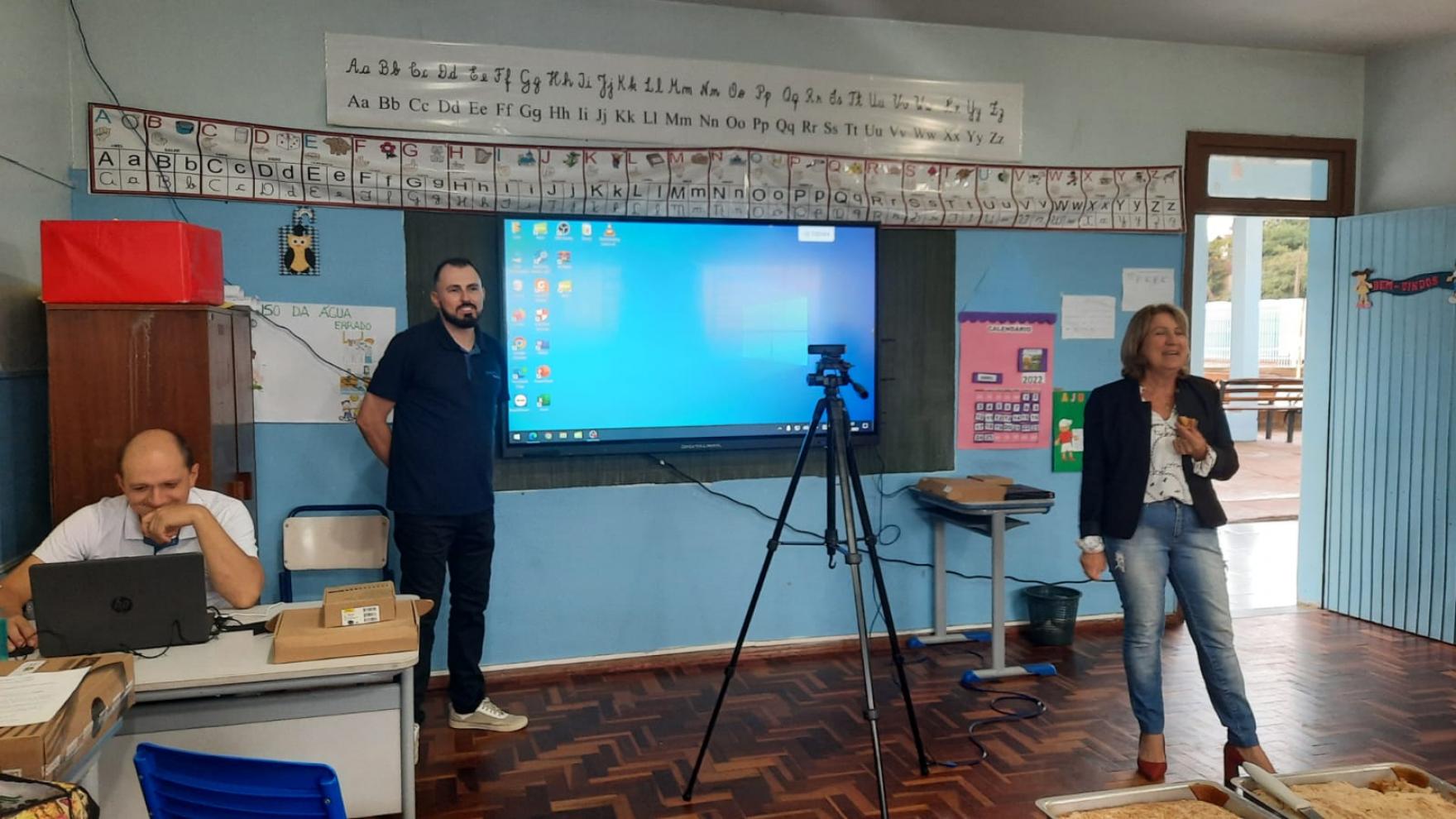 Nesse primeiro momento cada escola (EMEFs Francisca Cerutti, João Batista Mocelin e Presidente Costa e Silva) foi contemplada com três telas, que serão utilizadas com seis turmas, tanto no período da manhã quanto da tarde.