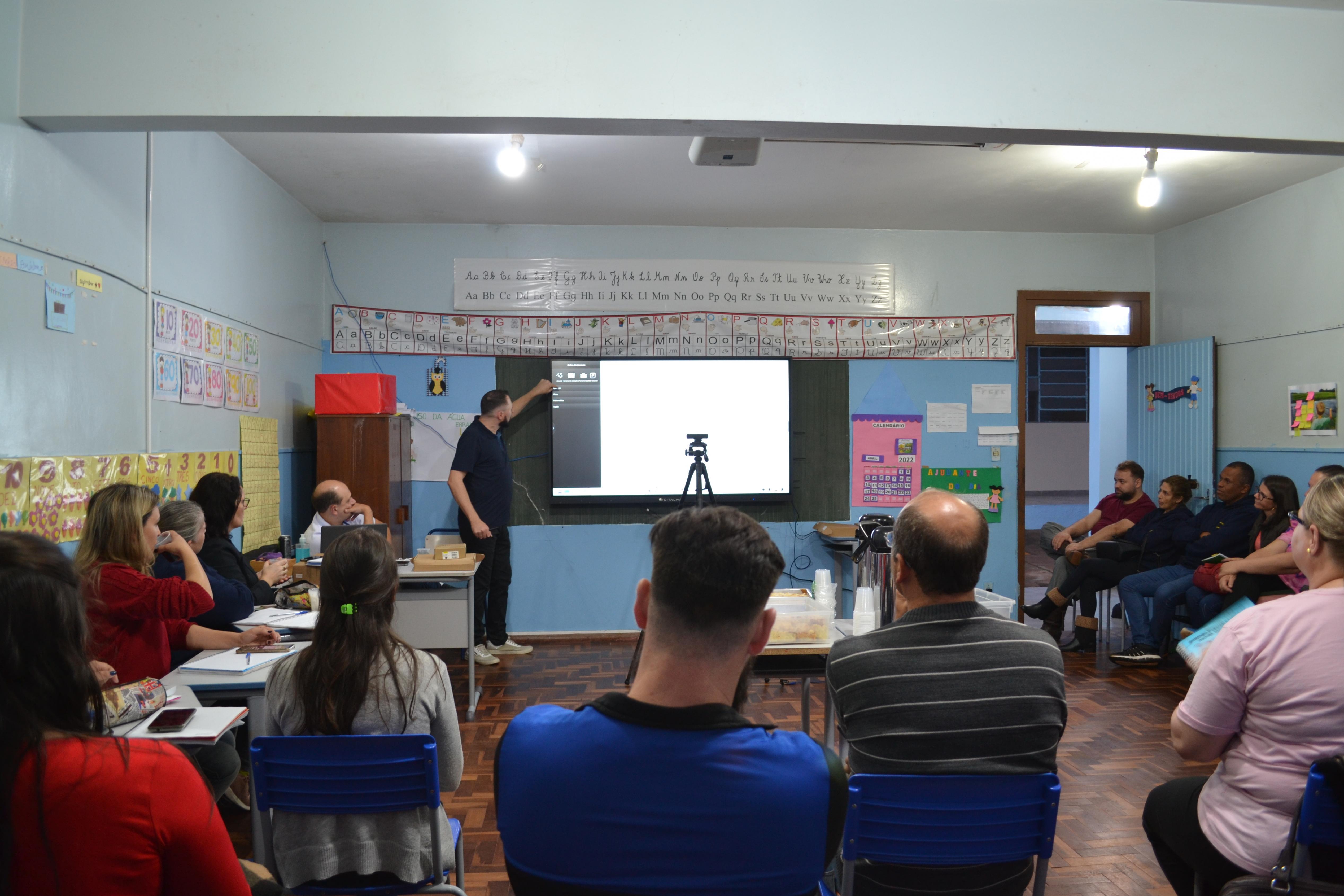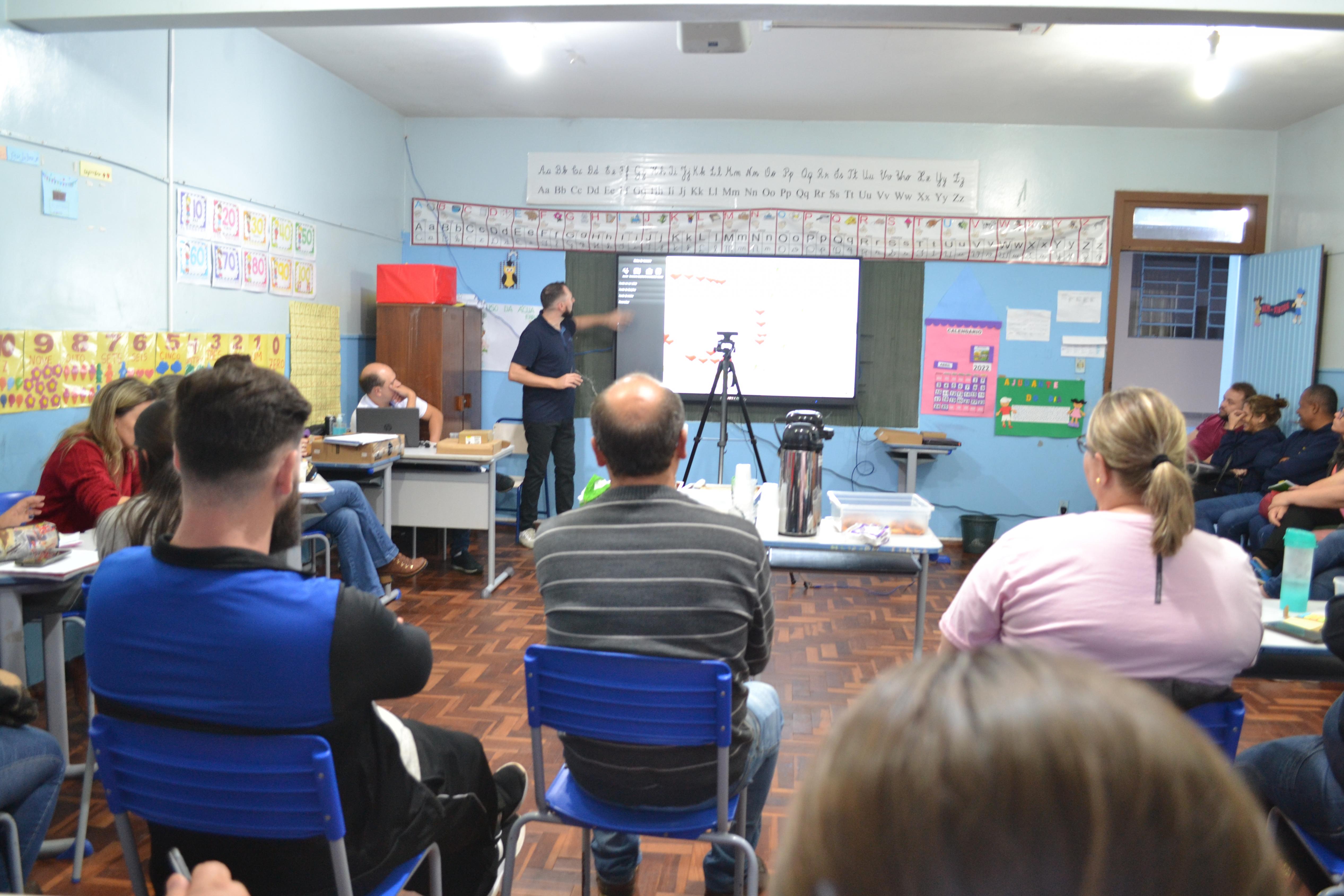 Os professores de ensino fundamental participaram de um treinamento sobre o uso das telas interativas na noite de terça-feira, 26/04, na EMEF Presidente Costa e Silva. A capacitação foi realizada pela empresa fornecedora e ao longo do ano serão ministradas mais três capacitações aos educadores.