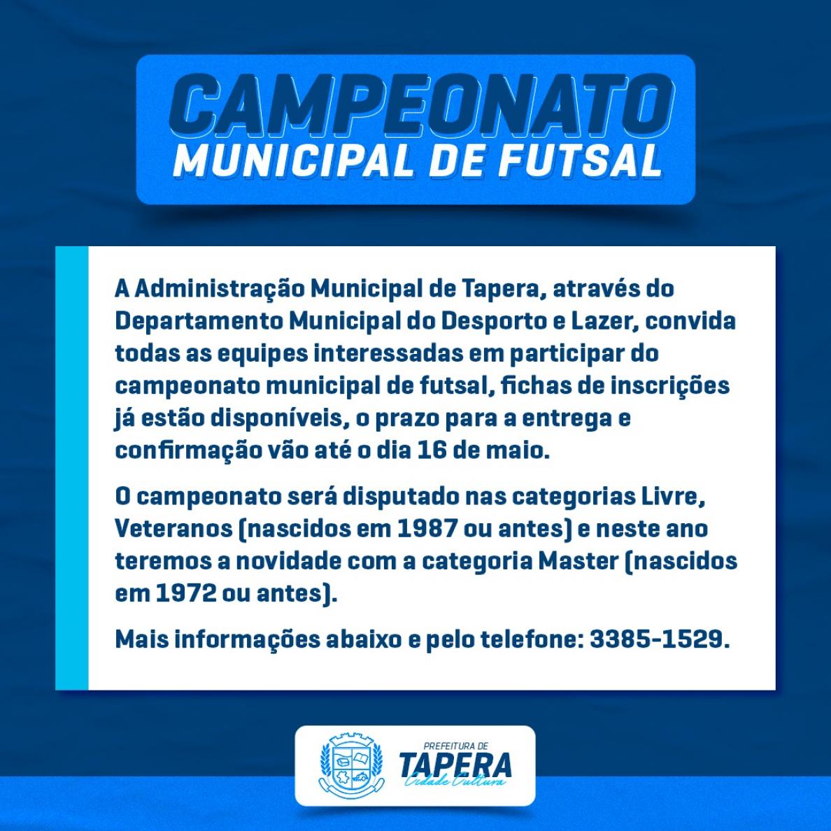 O Departamento de Desporto e Lazer convida a todas as equipes interessadas em participar, fichas de inscrições já estão disponíveis. Inscrições até: 16 de Maio.