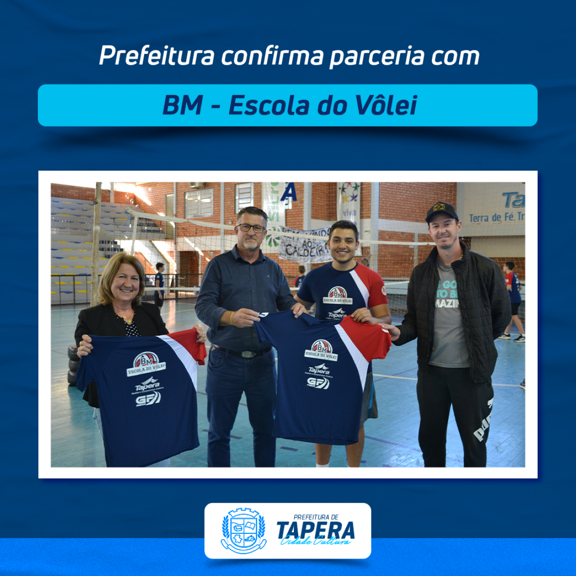 A Prefeitura Municipal e GF Pneus em parceria com a BM-Escola de Vôlei de Passo Fundo, está atendendo 40 jovens do Município de Tapera com treinamento de voleibol. Os treinos acontecem nas sextas-feiras à tarde, no Poliesportivo. A seleção dos participantes deu-se através de inscrição que aconteceu no mês de abril. Quem tiver interesse em se inscrever deve deixar seu nome no Poliesportivo para a lista de espera. A Administração Municipal e o Departamento de Desporto e Lazer, acreditam que a iniciação ao vôlei desenvolve nos alunos uma interação social, consciência corporal, responsabilidade, além do desenvolvimento técnico e motor, ajudando assim nas habilidades necessária para a formação de um bom cidadão.