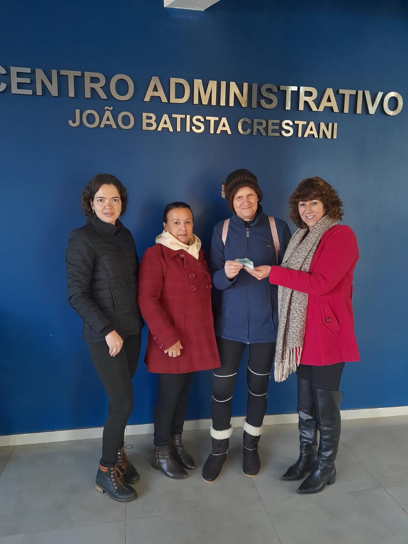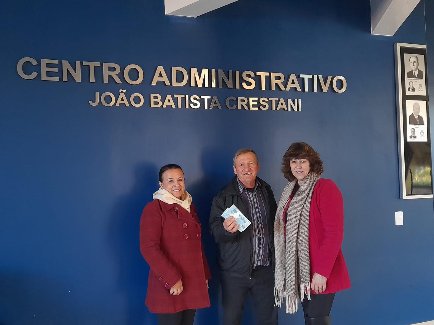 Tapera entrega prêmios em dinheiro do sorteio municipal da Nota Fiscal Gaúcha, que consiste na premiação mensal a todos os cidadãos que compram no município e inserem o número do CPF na nota fiscal. Os ganhadores são dos meses de Abril e Maio: Luis Carlos Bottcher (esposa), Ledani Sbabo, Osmar Port e Lordi Laura Franco.