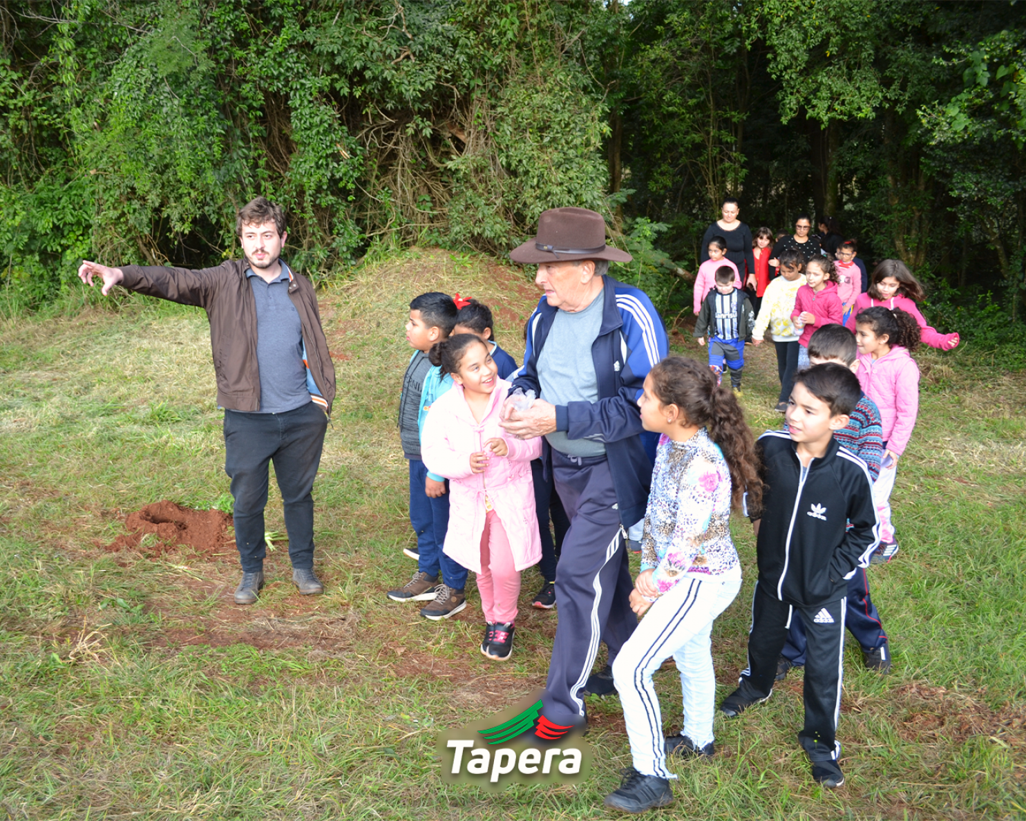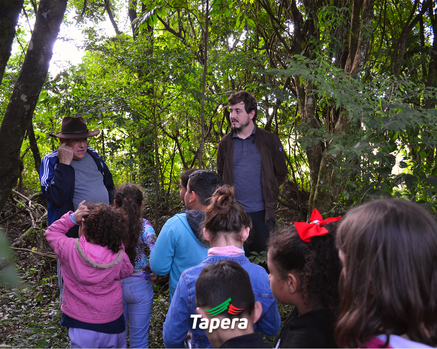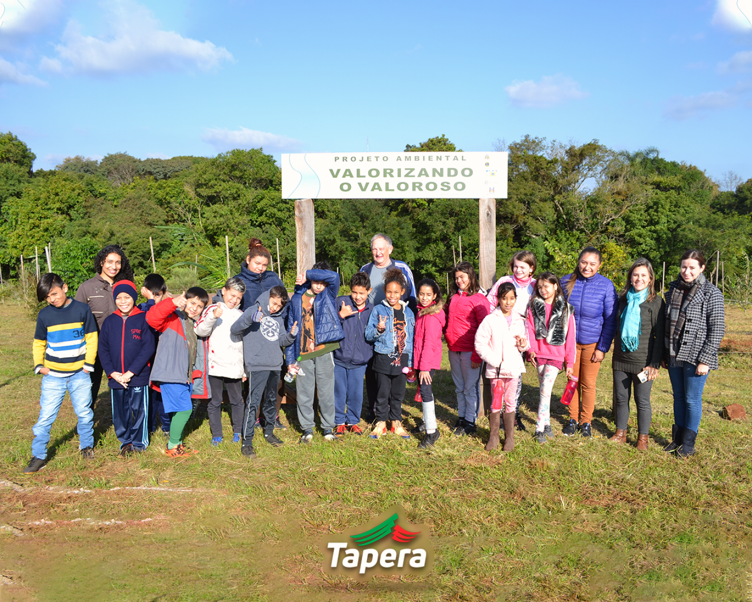 Na semana do meio ambiente, alunos puderam visitar e conhecer o projeto que busca revitalizar e preservar a nascente do Rio Valoroso. O professor, idealizador do projeto e representante do Lions Club de Tapera, Vicente Werlang, contou um pouco da história do Valoroso e do projeto, no qual tem o objetivo de conscientizar a comunidade da preservação do meio ambiente. Estiveram também acompanhando a visita o Secretário de Desenvolvimento, Elias Goulart, Diretor de Meio Ambiente, Alexandre Kronbauer, e a Coordenadora Pedagógica, Lucimara Karpe, que aproveitaram a oportunidade para replantar algumas mudas de plantas nativas, com os alunos.