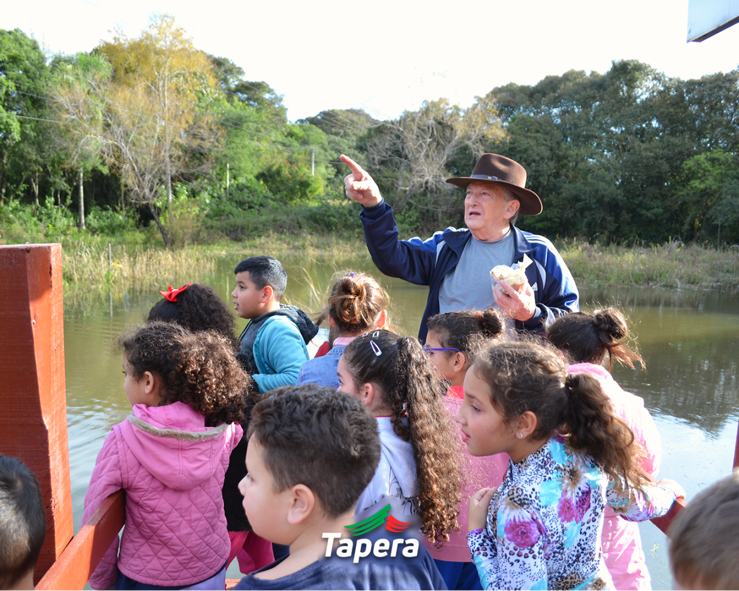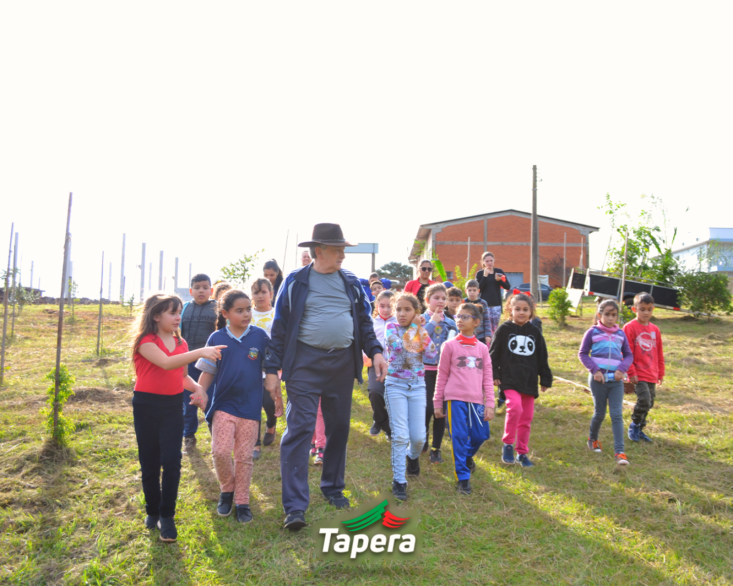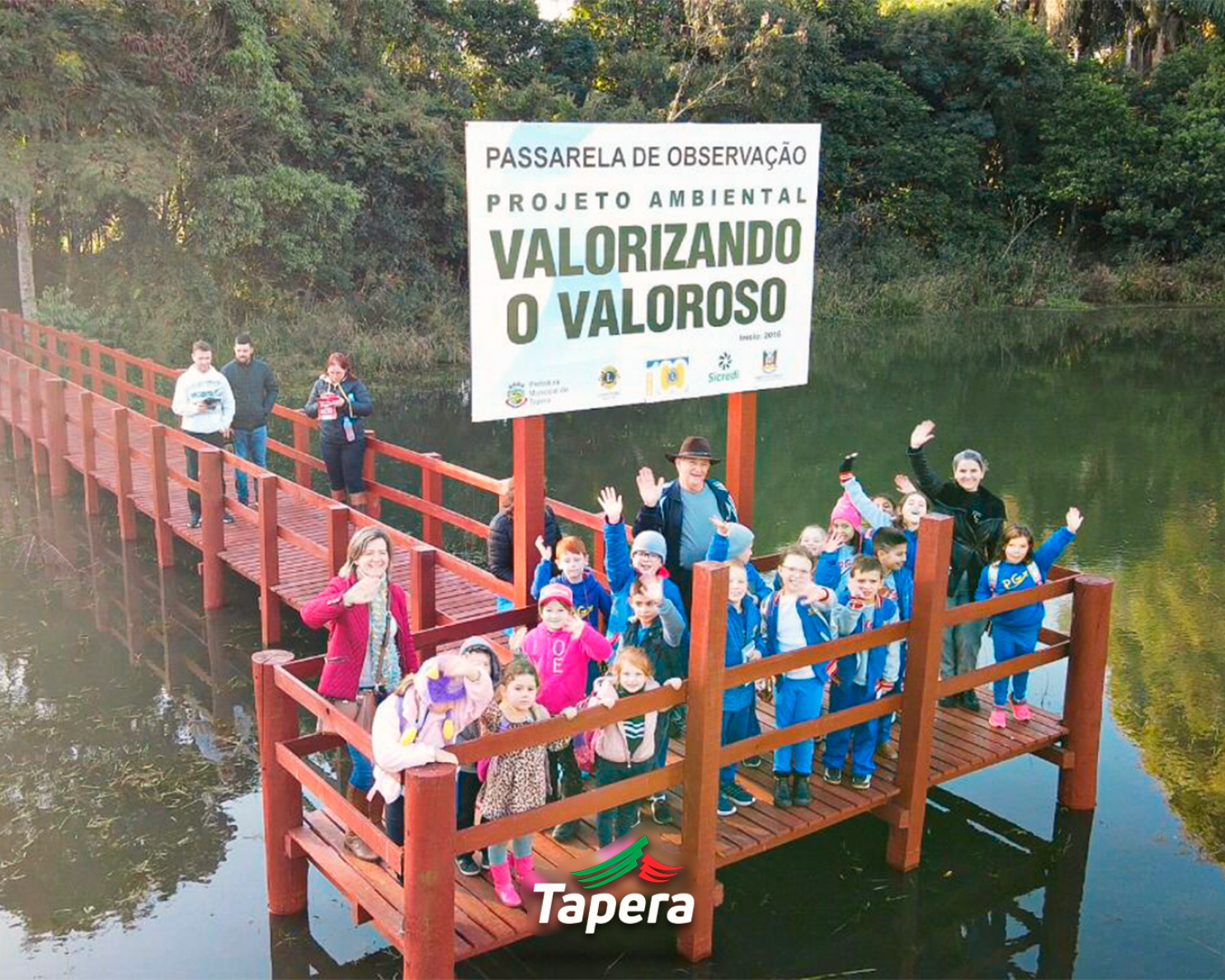 Na semana do meio ambiente, alunos puderam visitar e conhecer o projeto que busca revitalizar e preservar a nascente do Rio Valoroso. O professor, idealizador do projeto e representante do Lions Club de Tapera, Vicente Werlang, contou um pouco da história do Valoroso e do projeto, no qual tem o objetivo de conscientizar a comunidade da preservação do meio ambiente. Estiveram também acompanhando a visita o Secretário de Desenvolvimento, Elias Goulart, Diretor de Meio Ambiente, Alexandre Kronbauer, e a Coordenadora Pedagógica, Lucimara Karpe, que aproveitaram a oportunidade para replantar algumas mudas de plantas nativas, com os alunos.