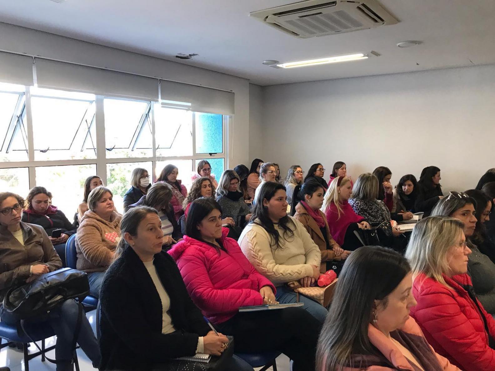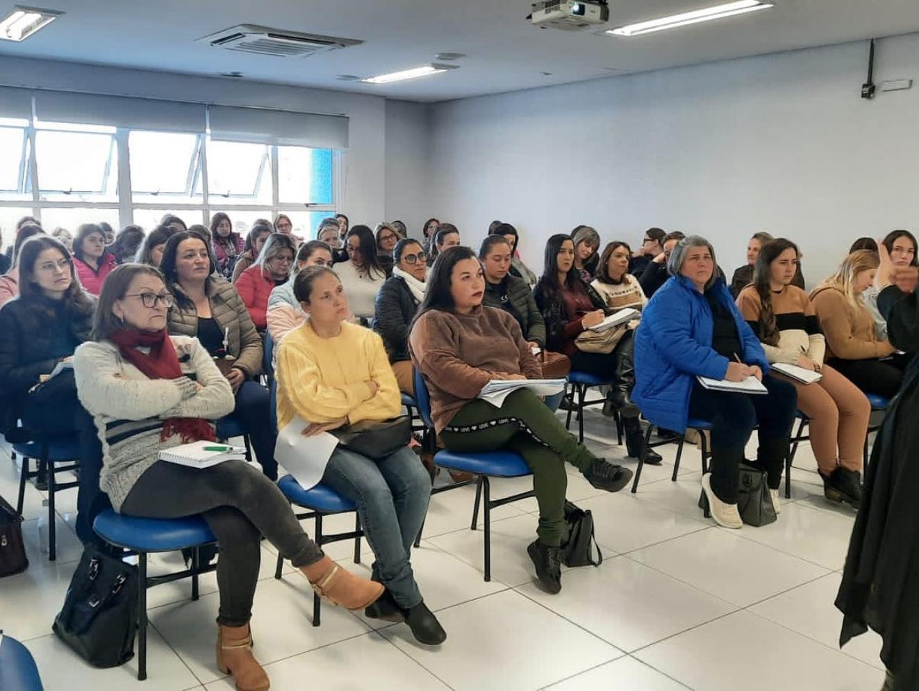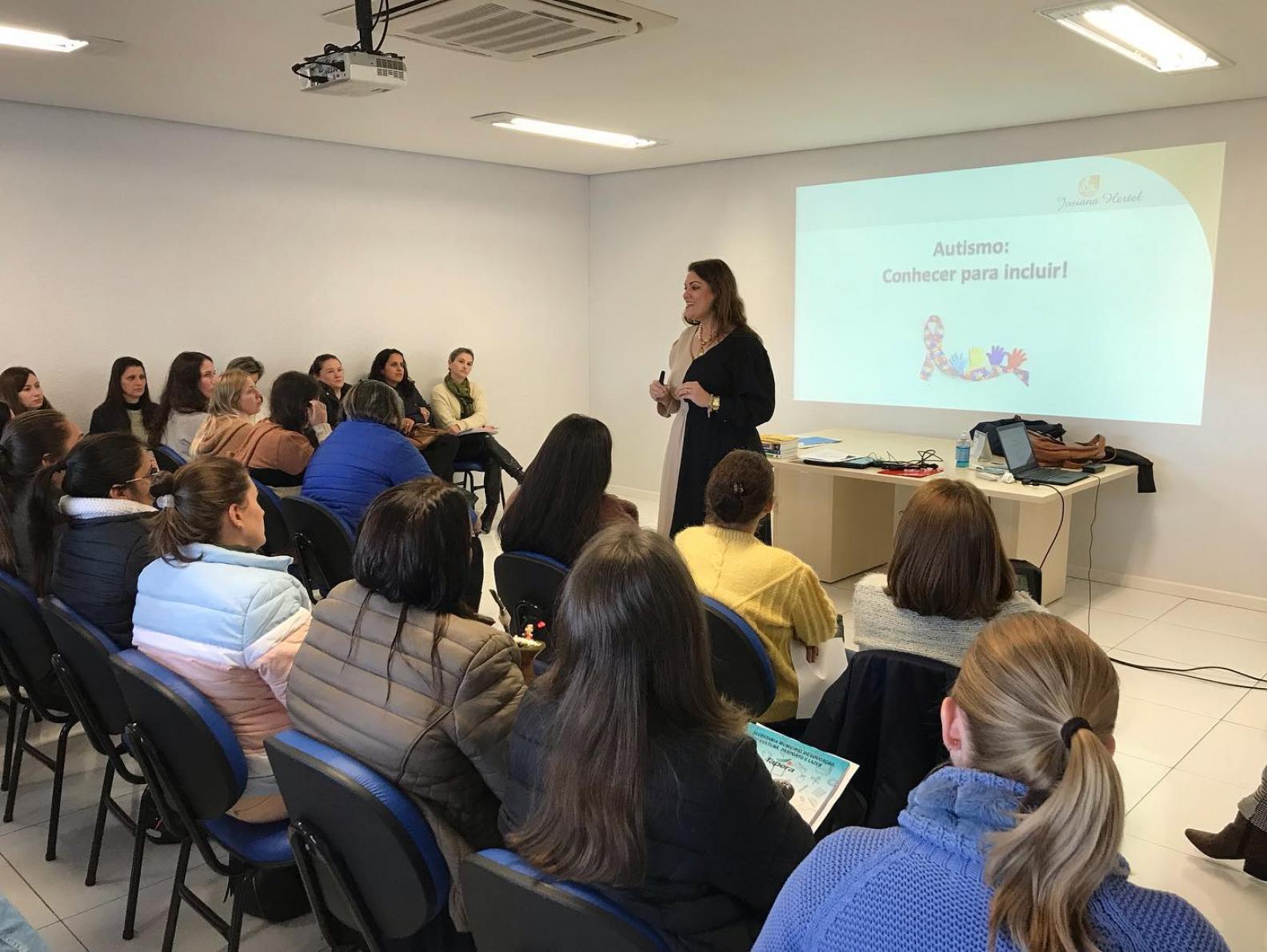Por fim, socialização por representante da EMEF João Batista Mocelin sobre Síndrome de Down e apresentação da Neuropsicopedagoga Josiana Hertel que abordou o tema sobre Autismo.