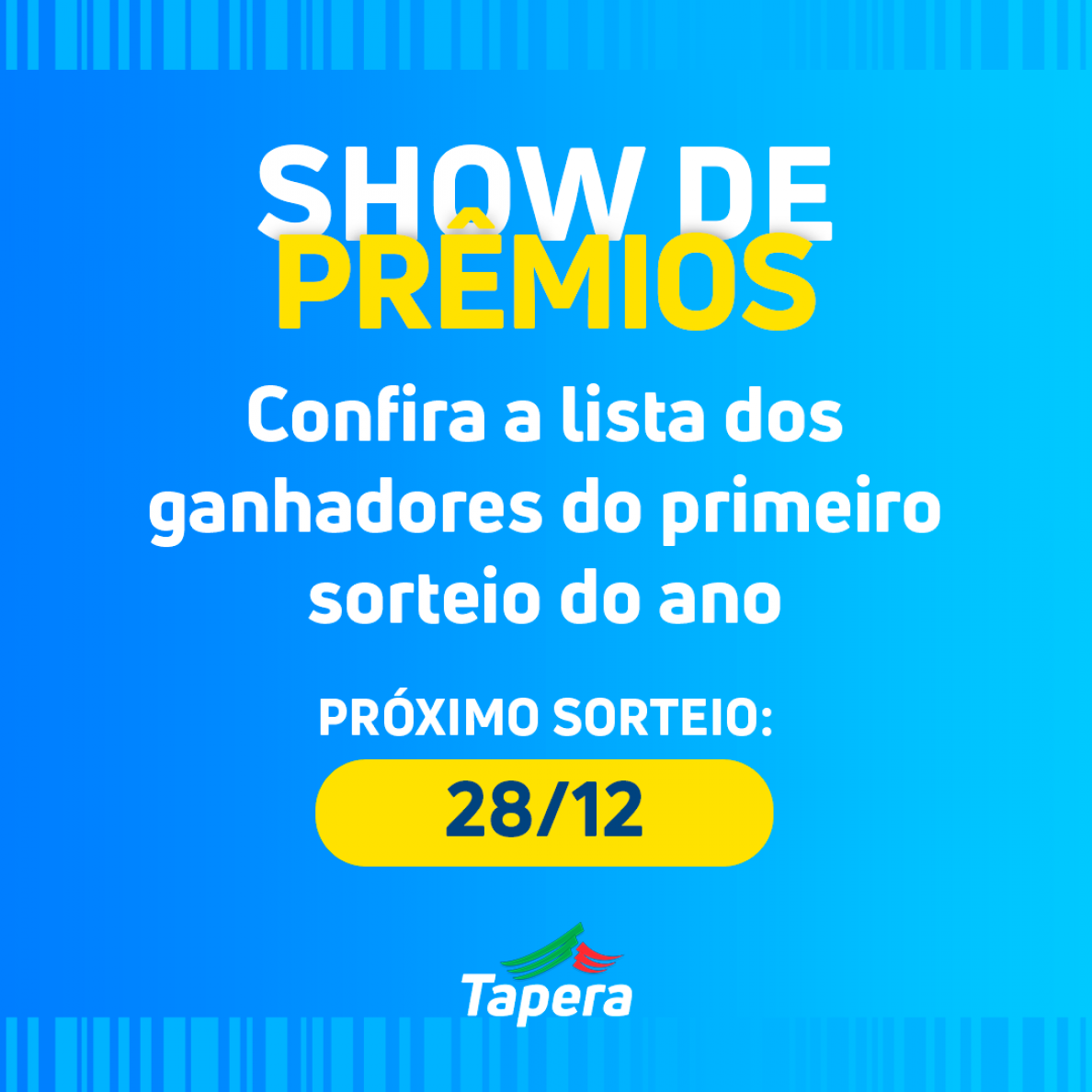 Ganhadores do sorteio Show de Prêmios do Município de Tapera, do dia 28 de Junho de 2022: