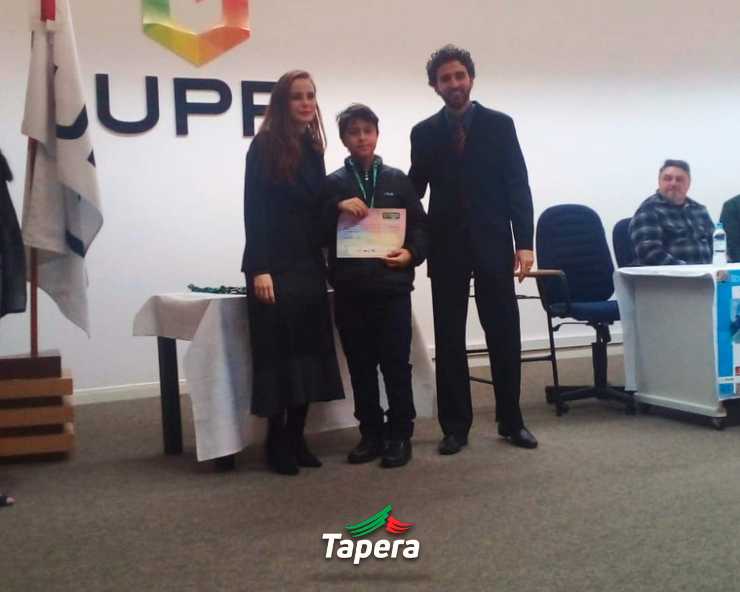 No dia 1º de julho, sexta-feira, o aluno Vítor Rodrigues dos Santos, do 7º ano, da EMEF Presidente Costa e Silva, participou da cerimônia de premiação da 16ª Olimpíada Brasileira de Matemática das Escolas Públicas e Privadas, na Universidade de Passo Fundo (UPF). O aluno recebeu medalha de bronze na segunda fase e fez história na instituição por ser o primeiro estudante a receber tal premiação.