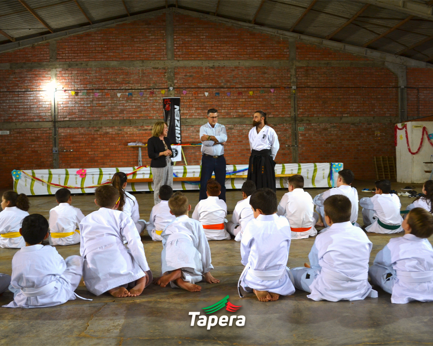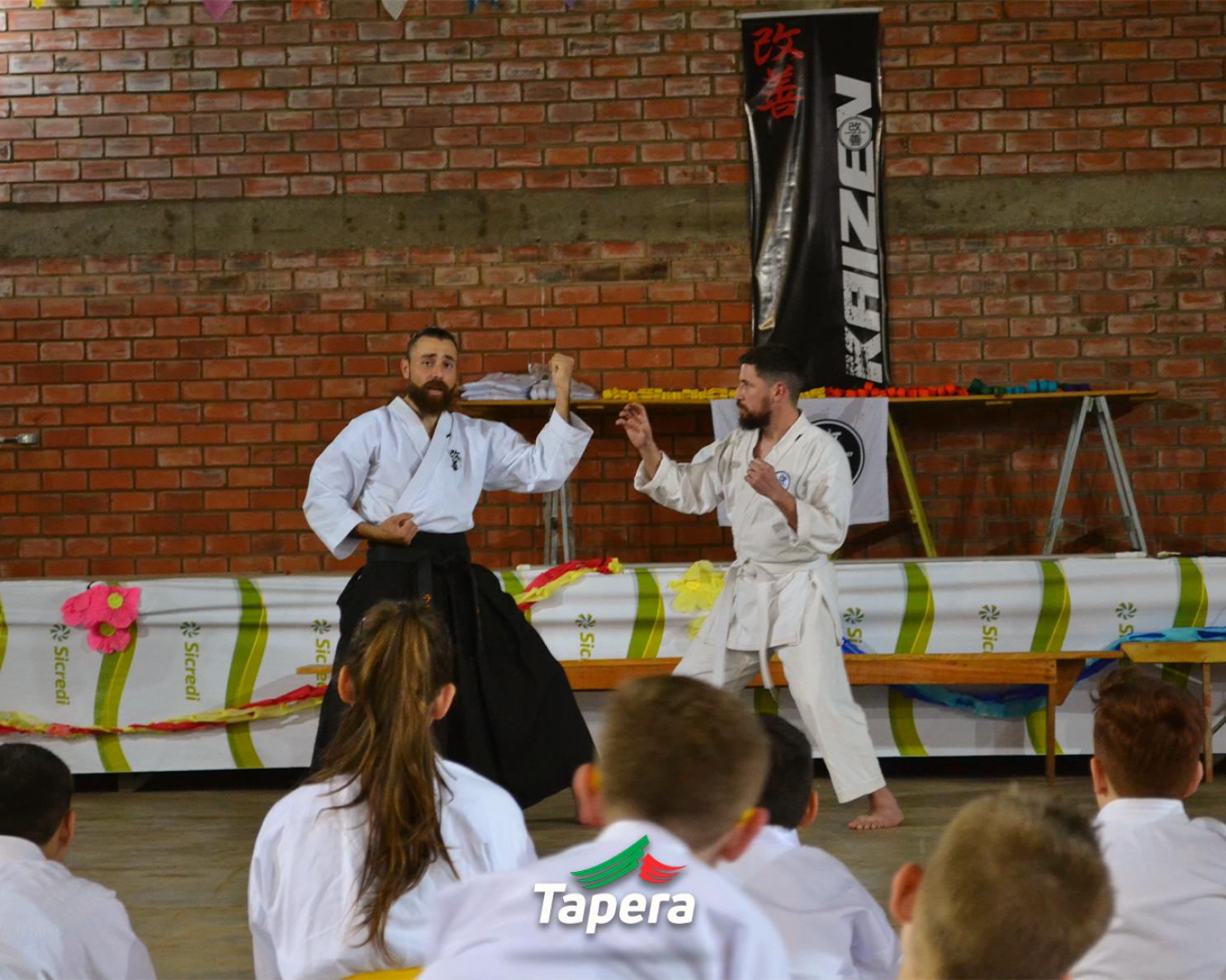 Na noite do dia 11/07, ocorreu no pavilhão do Parque de Exposições de Tapera a troca de faixas dos 50 alunos de karate da Kaizen, que graduaram no domingo, 03/07. A cerimônia contou com a presença dos familiares, do Prefeito, Volmar Kuhn, e da Secretária de Educação, Maria Regina Salvadori.