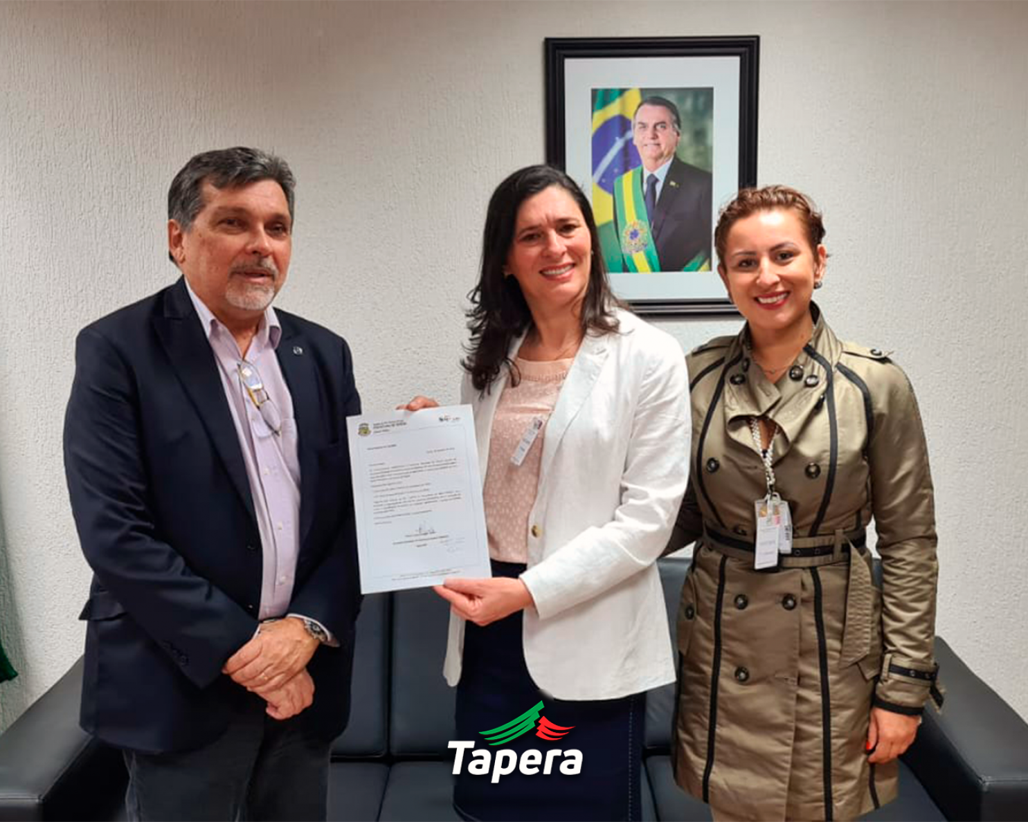 No Ministério da Cidadania, Gabinete do Ministro, foi recebida pelo Assessor da Assessoria Especial Parlamentar e Federativa, Carlos Antônio de Rezende, para audiência. A ele foi entregue solicitações do Município de Tapera, para a SEMASC. Entre algumas solicitações estavam a de 1 carro o km para o trabalho da secretaria e do CRAS, 1 kit CRAS e recursos para a reforma do Centro de Convivência do Idoso.