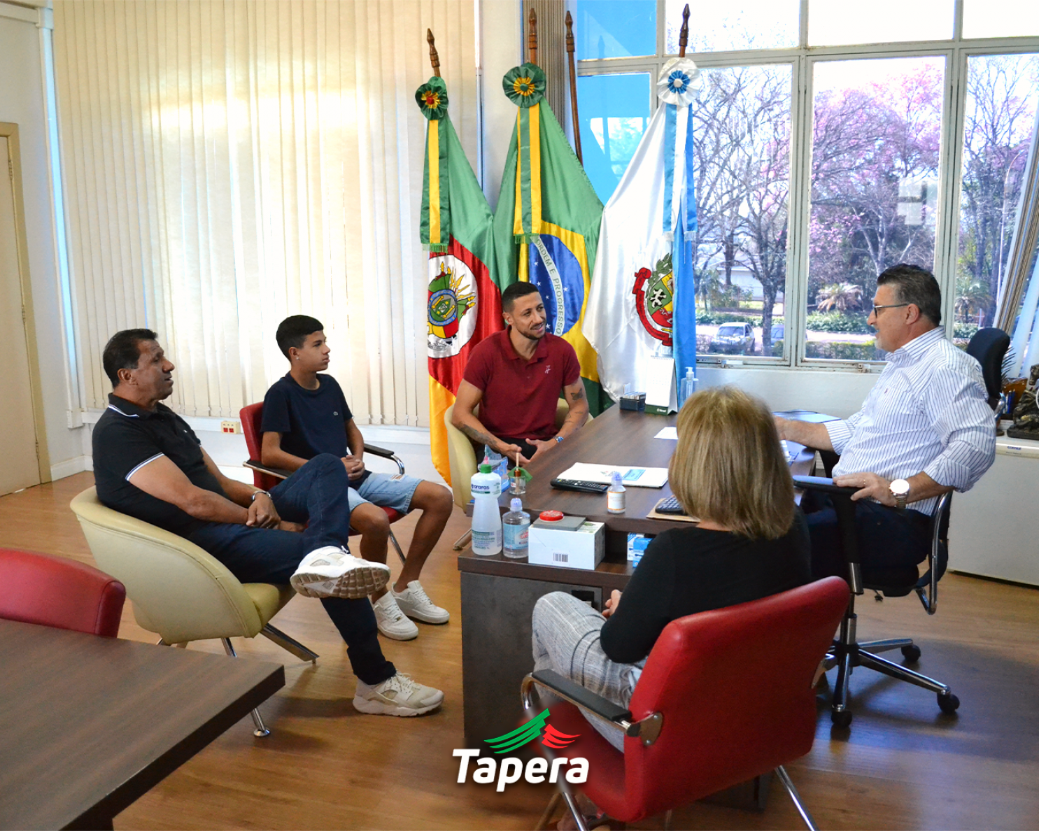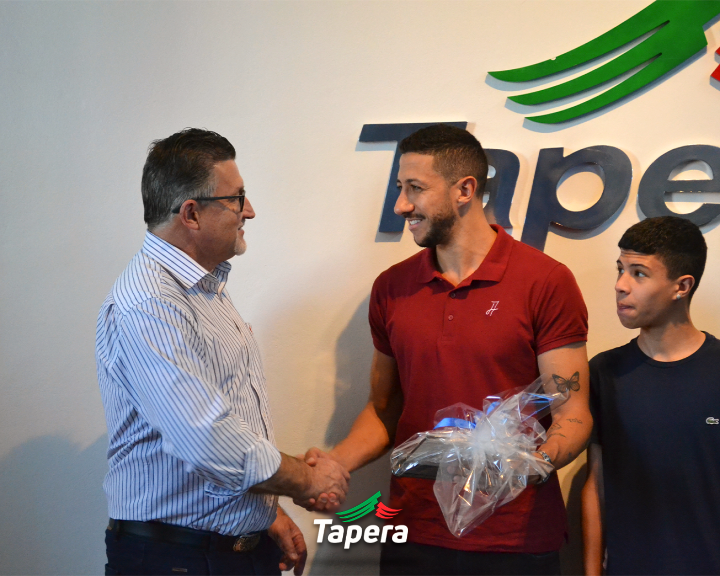 Na tarde de hoje, 26/07, o Prefeito, Volmar Kuhn, recebeu em seu gabinete a visita do jogador de futsal, Cainan de Matos. O jogador, que está de férias em Tapera, recebeu pelas mãos do prefeito uma placa de homenagem pela carreira de sucesso e por representar tão bem o município.