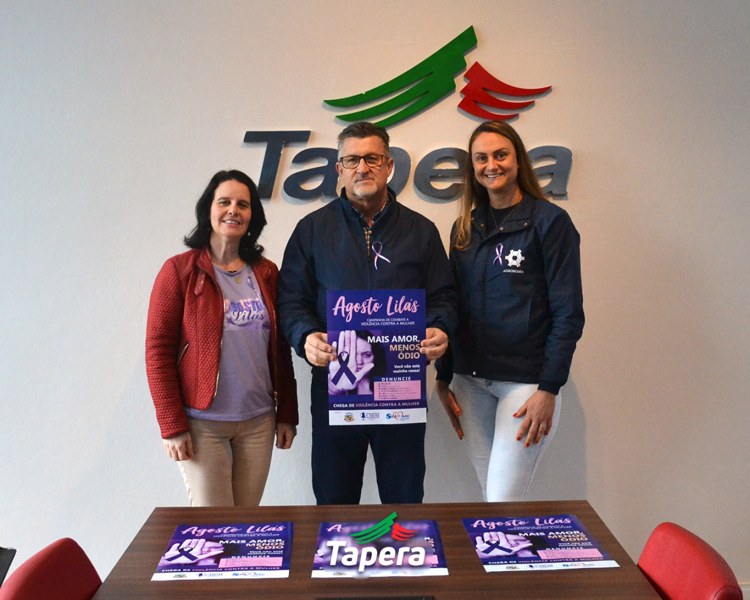 O prefeito, Volmar Kuhn, recebeu hoje em seu gabinete a presidente do Conselho Municipal de Direitos da Mulher de Tapera, Verônica Spezia de Matos, acompanhada da vice-presidente, Catieli Klein.