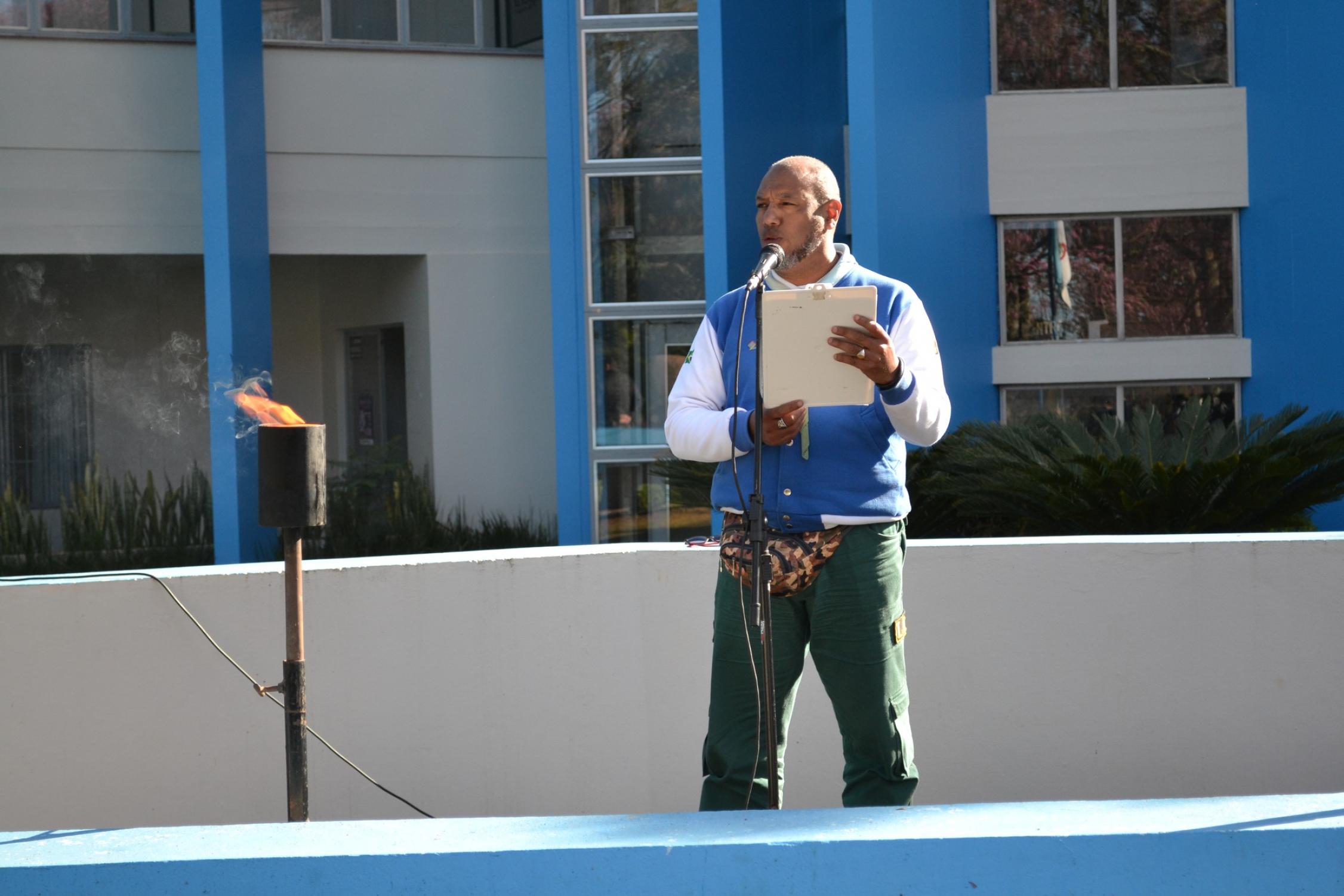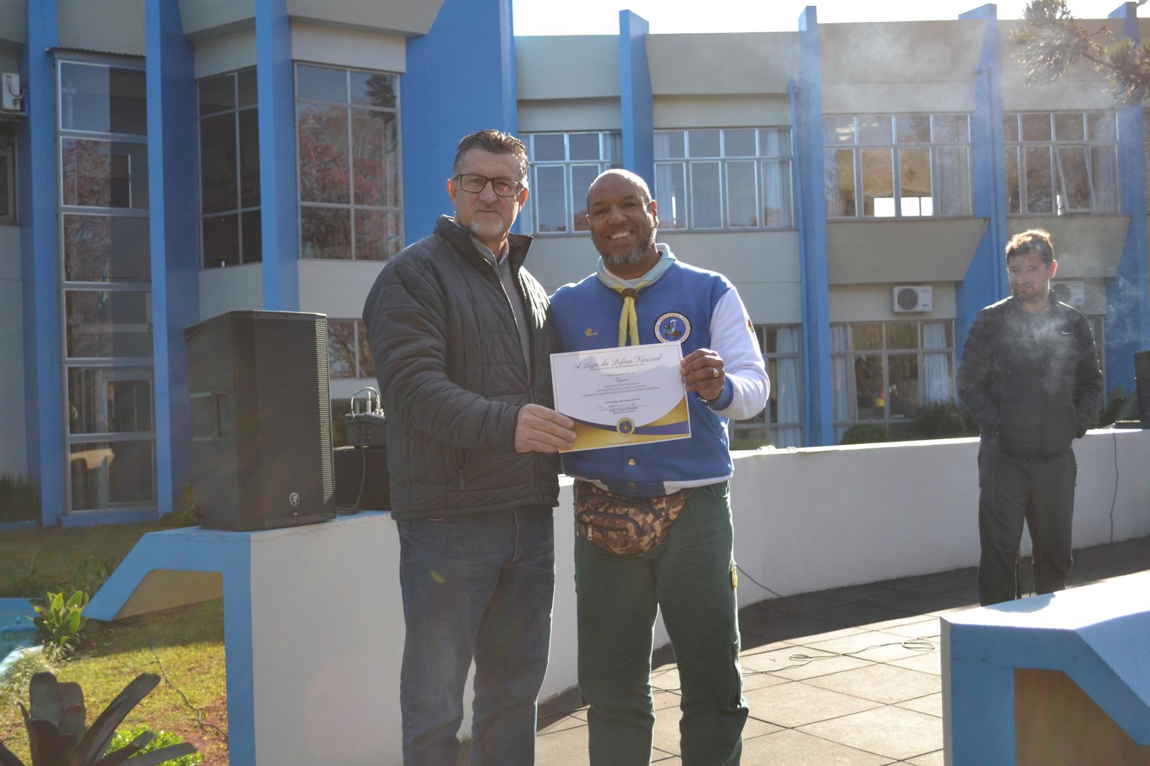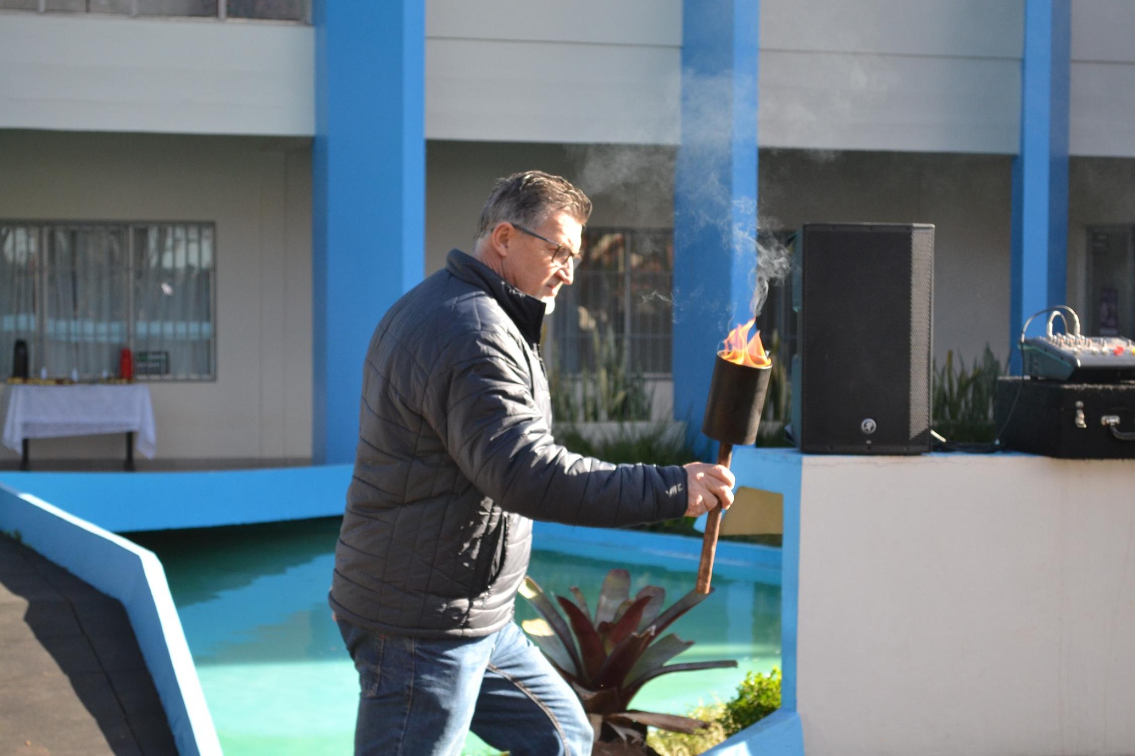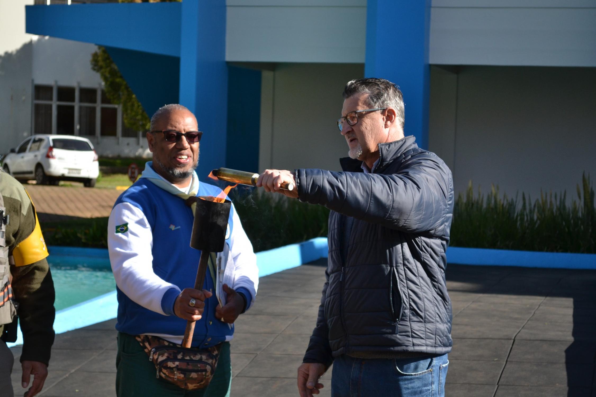 O prefeito, Volmar Helmut Kuhn, recebe das mãos do diretor institucional da Liga da Defesa Nacional do Rio Grande do Sul, Gilmar Sousa Chagas, a centelha e o diploma de participação na 85ª Corrida do Fogo Simbólico da Pátria – Corrida do Bicentenário da Independência do Brasil. O fogo permanecerá no município até o término da Semana da Pátria.