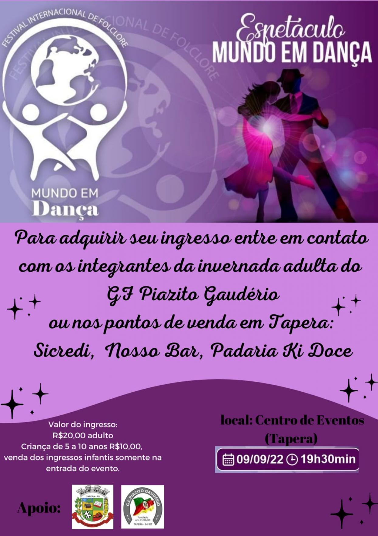 Dia 09 de Setembro irá acontecer o Festival Internacional do Folclore, o evento ocorrerá no Centro de Eventos de Tapera, às 19:30h.