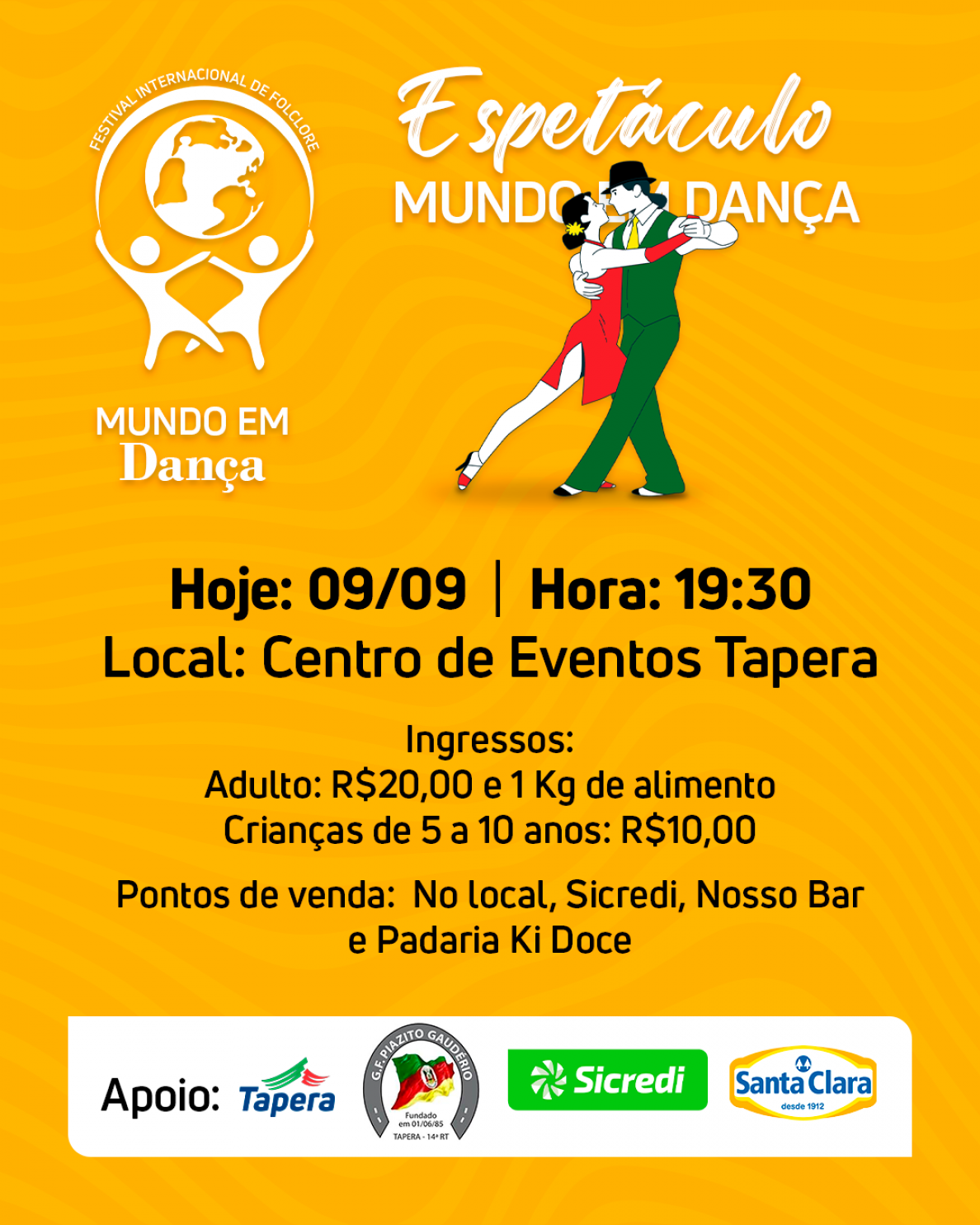 HOJE acontecerá em Tapera, no Centro de Eventos às 19:30 horas, o Festival Internacional do Folclore.