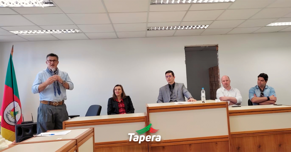 Nesta quinta-feira, 15/09, ocorreu na sala do Tribunal do Júri, no Fórum de Tapera, a solenidade de apresentação do novo juiz titular da Comarca de Tapera, Giovane Getúlio Menegaz, que representará outros três municípios que fazem parte da mesma, Colorado, Lagoa dos Três Cantos e Selbach.