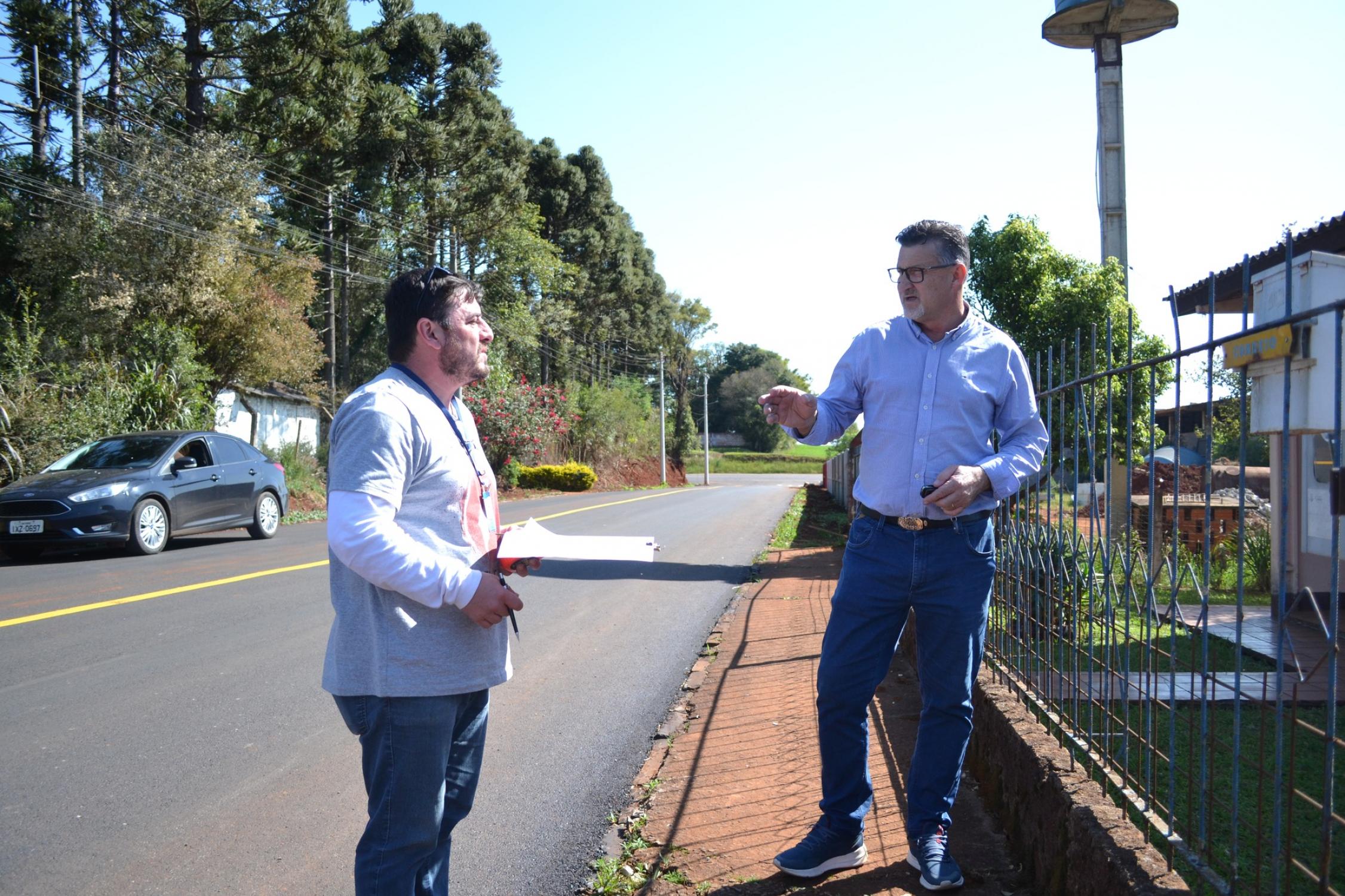 O prefeito, Volmar Kuhn, acompanhado do arquiteto, Rodrigo Goulart, estiveram visitando e analisando a obra de asfaltamento na Vila Paz que está em andamento. A obra ainda contará com calçada (passeio público) e o prefeito conversou com alguns moradores explicando que já está em busca de mais recursos para futuramente estender o asfalto e asfaltar mais ruas da Vila Paz.