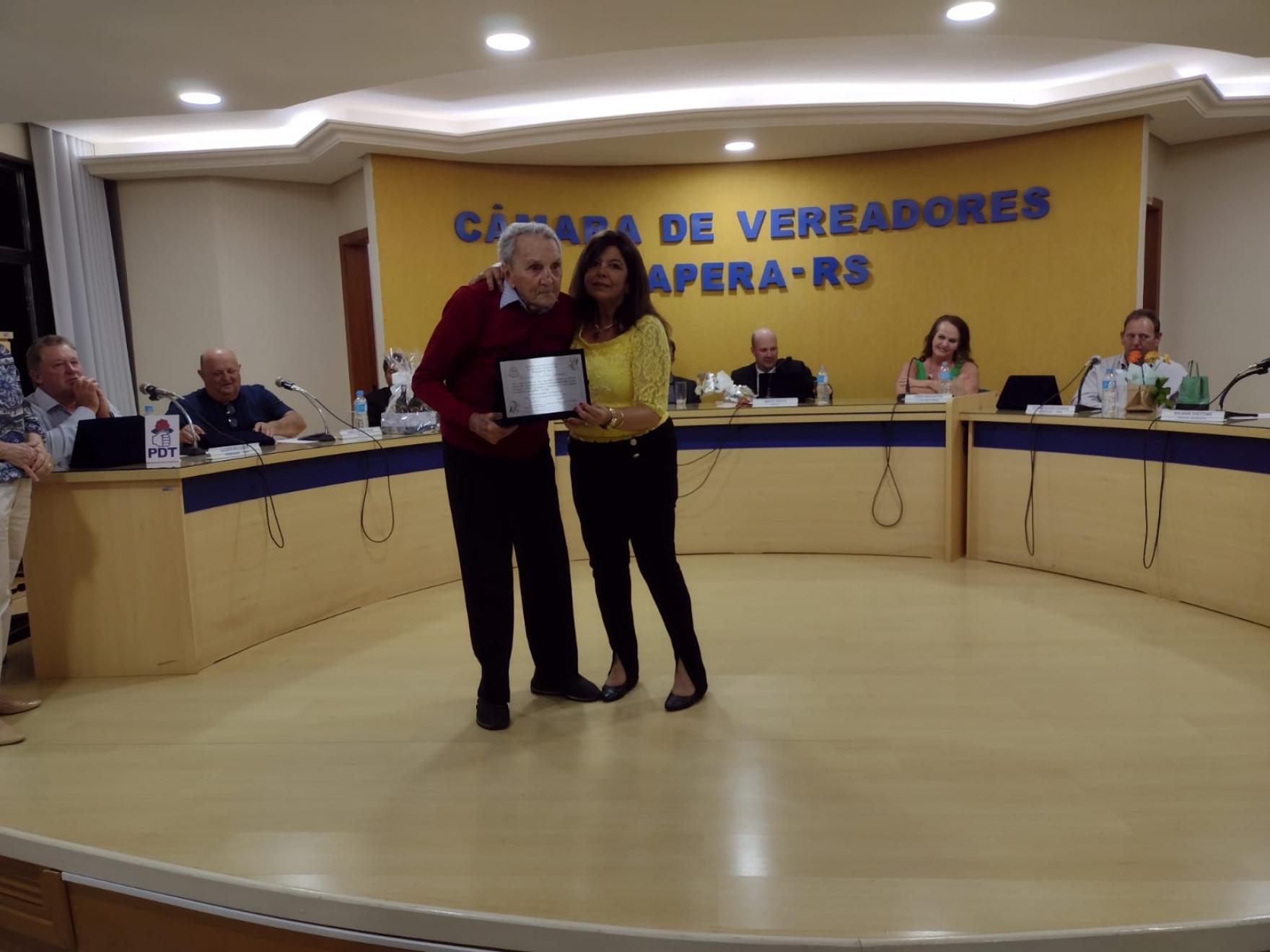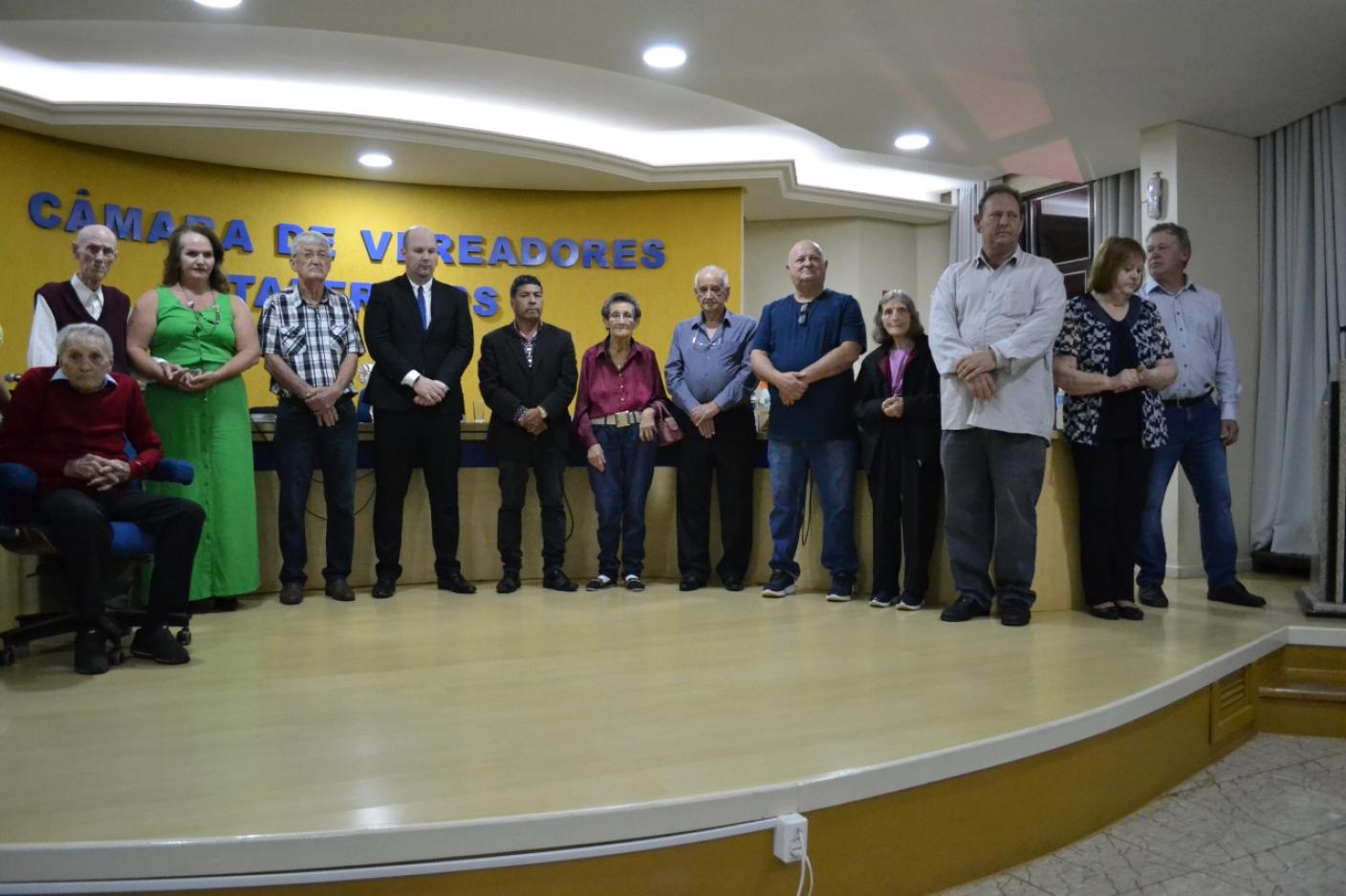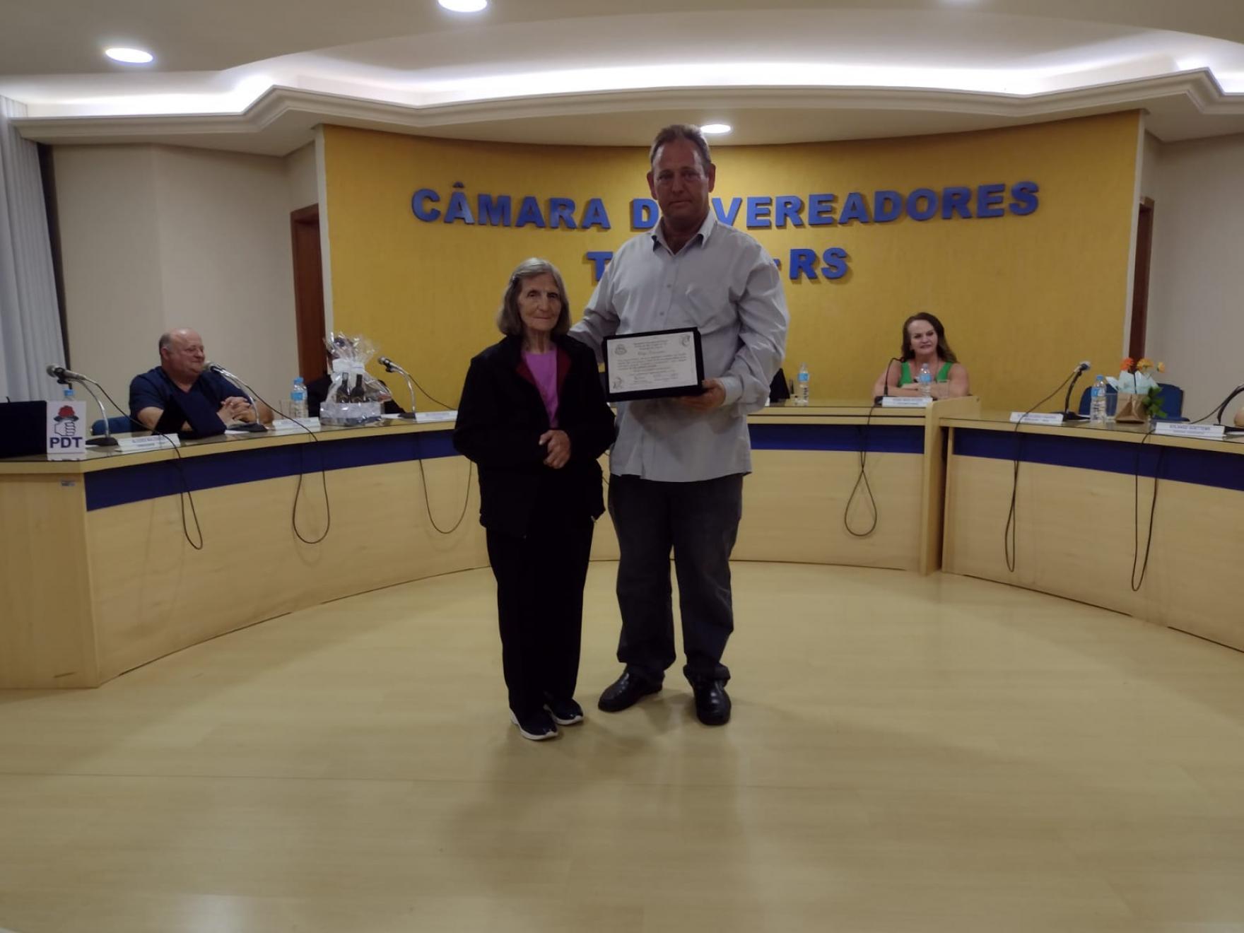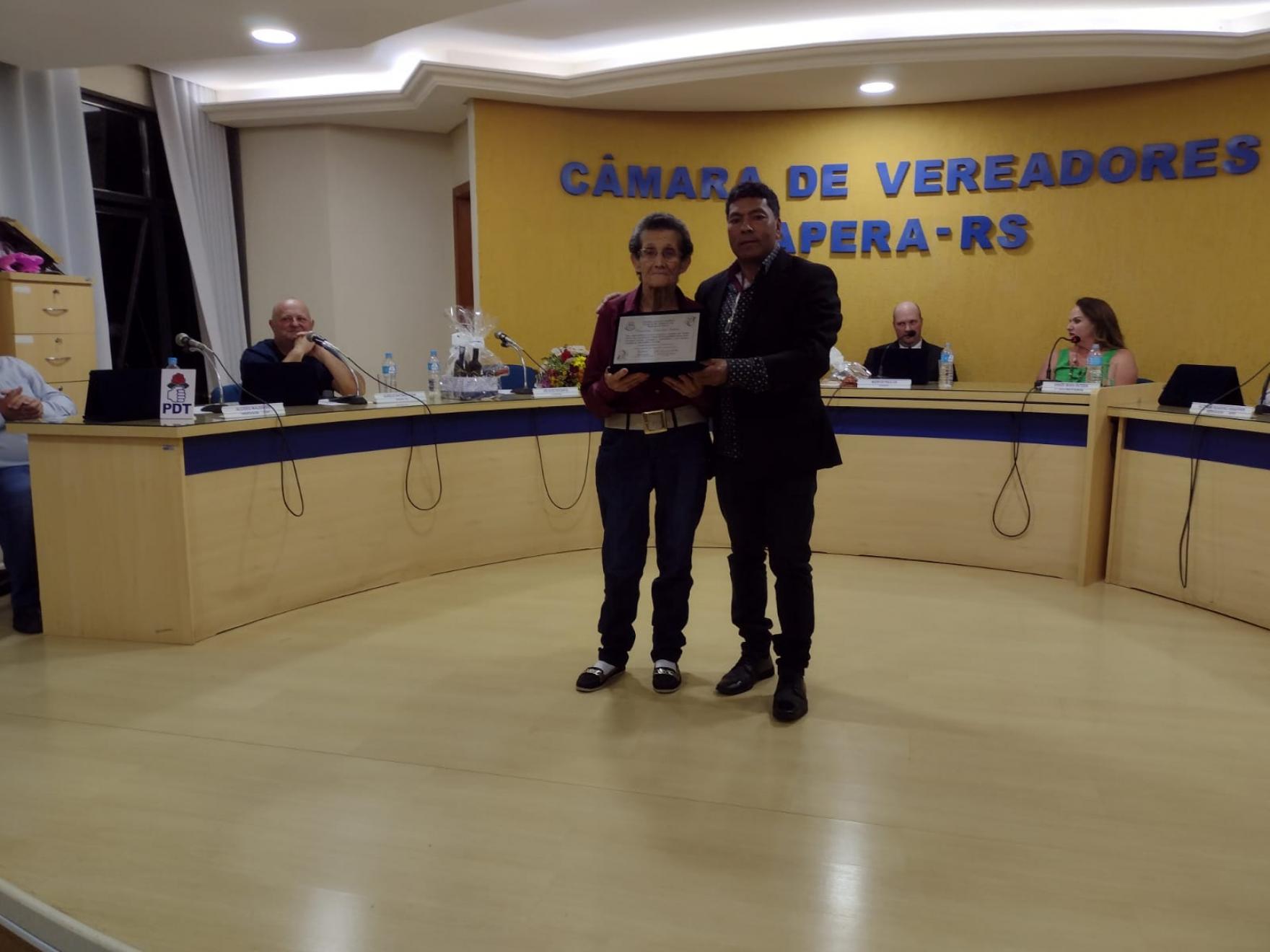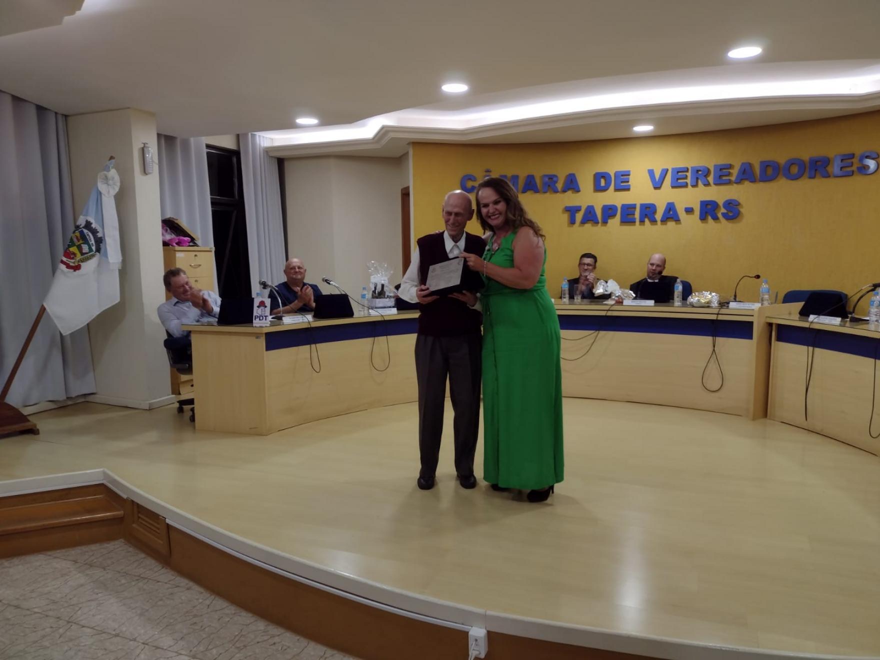 A Câmara Municipal de vereadores de Tapera realizou na noite de ontem, 26/10, a entrega do Título de Personalidade Idosa do município de Tapera. Cada vereador indicou uma pessoa para receber uma placa. Confira os homenageados da noite.