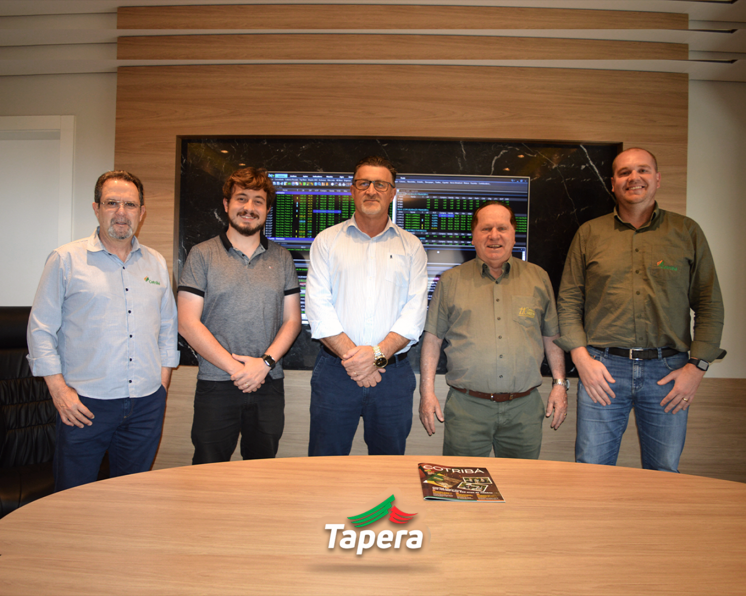 O Prefeito, Volmar Kuhn, e o Secretário de Desenvolvimento, Elias Goulart, reuniram-se com o presidente da Cotribá, Celso Leomar Krug, vice-presidente, Enio Cesar Moura de Nascimento, e coordenador da unidade de Tapera, Tiago Rafael Seibel.