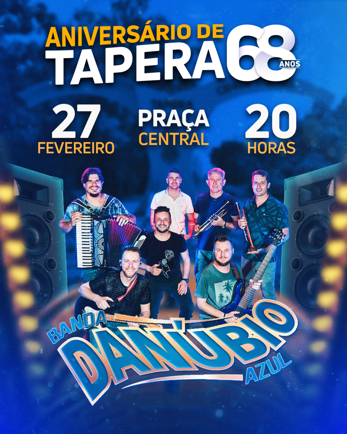 Para comemorar esta data tão especial, a Banda Danúbio Azul estará fazendo um super show na Praça Central para comemorarmos juntos os 68 anos da nossa querida cidade.