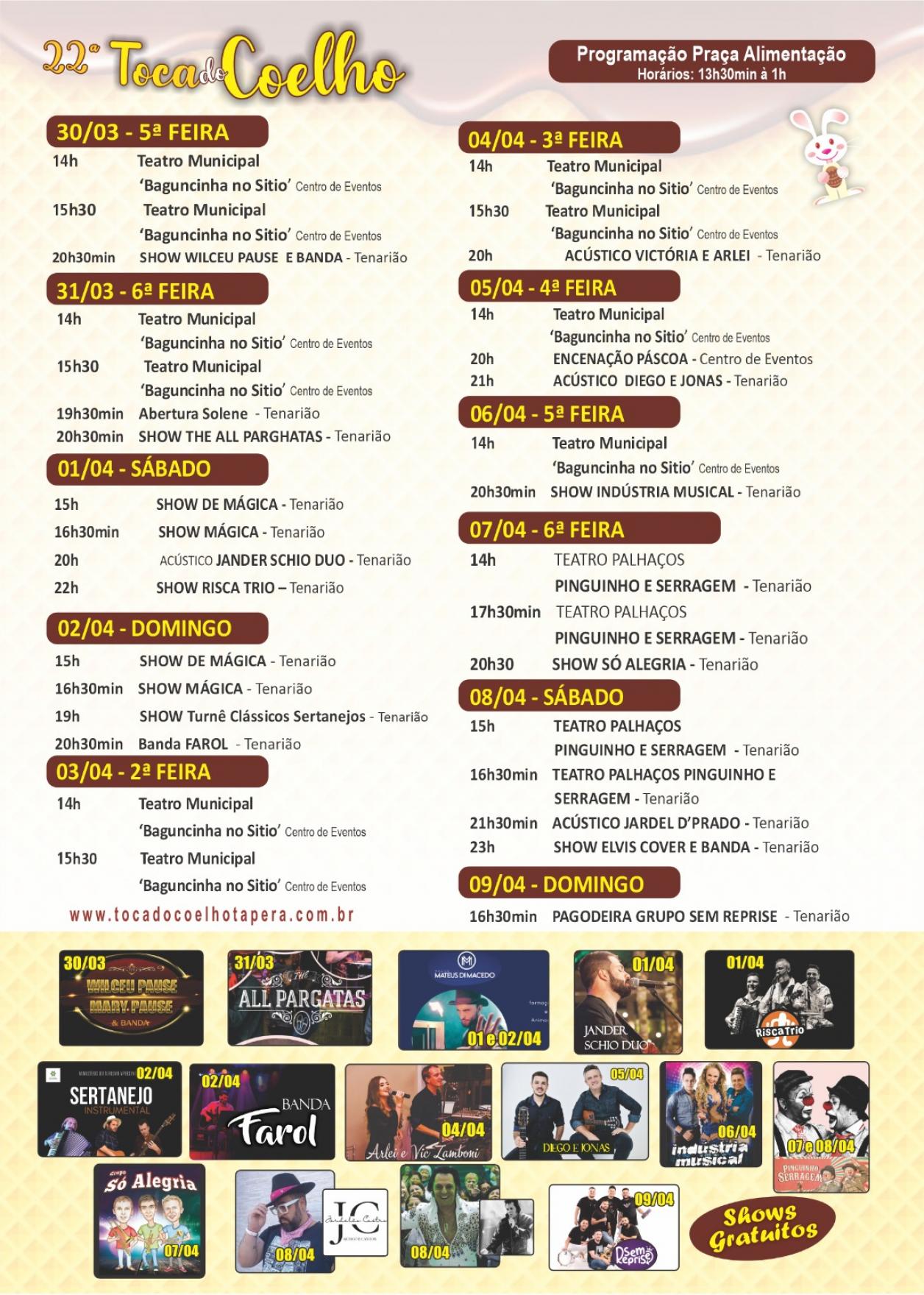 Serão 11 dias com muitas atividades: acústicos, shows, teatros infantis, praça de recreação e muito mais. Um evento para toda família.