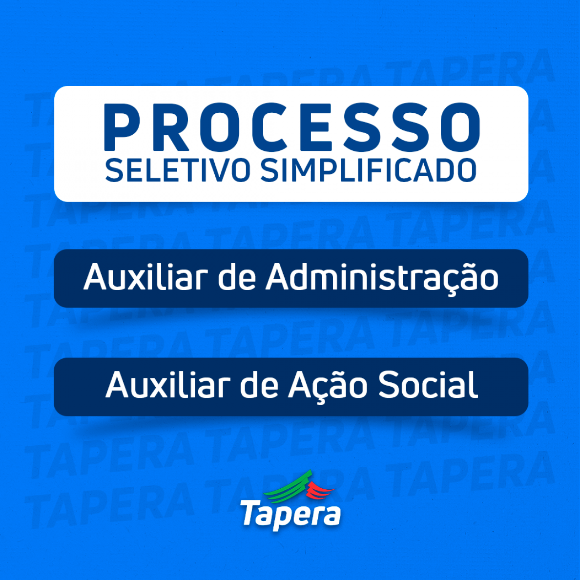Aberta as inscrições para os processos seletivos simplificados. Para mais informações, acesse o site da Prefeitura Municipal de Tapera (Concursos > Processo Seletivo > 2023) ou ligue: 3385-3300.