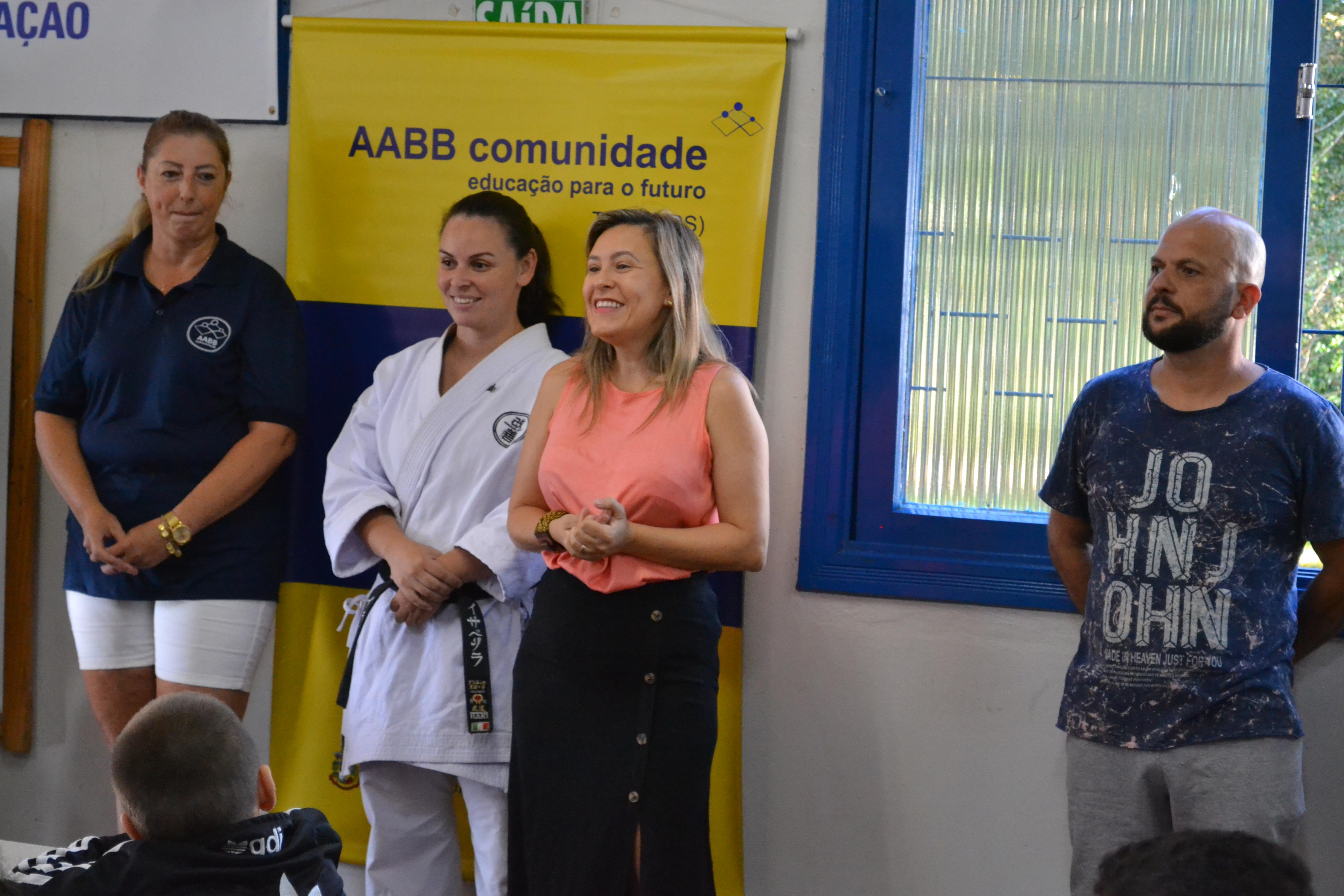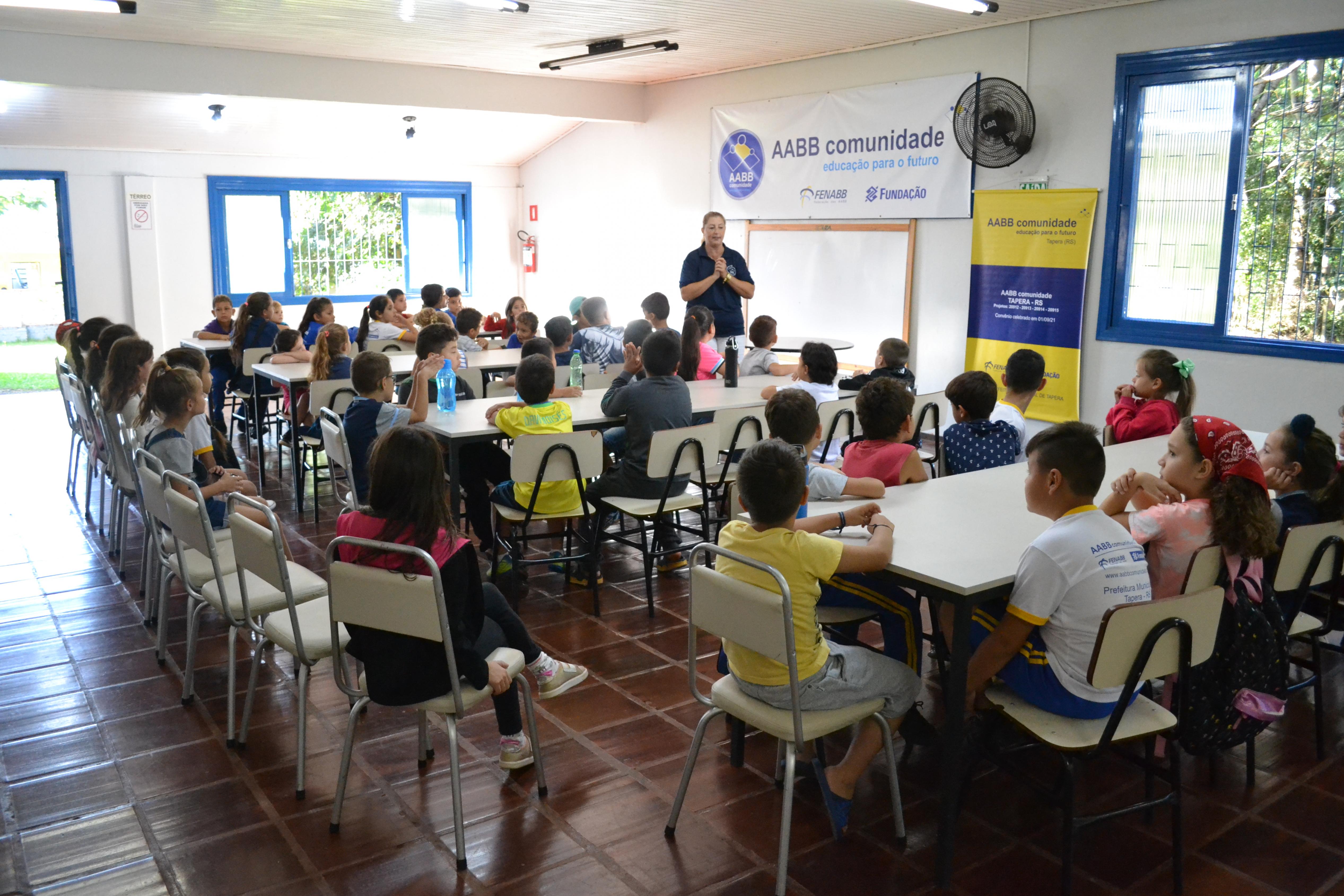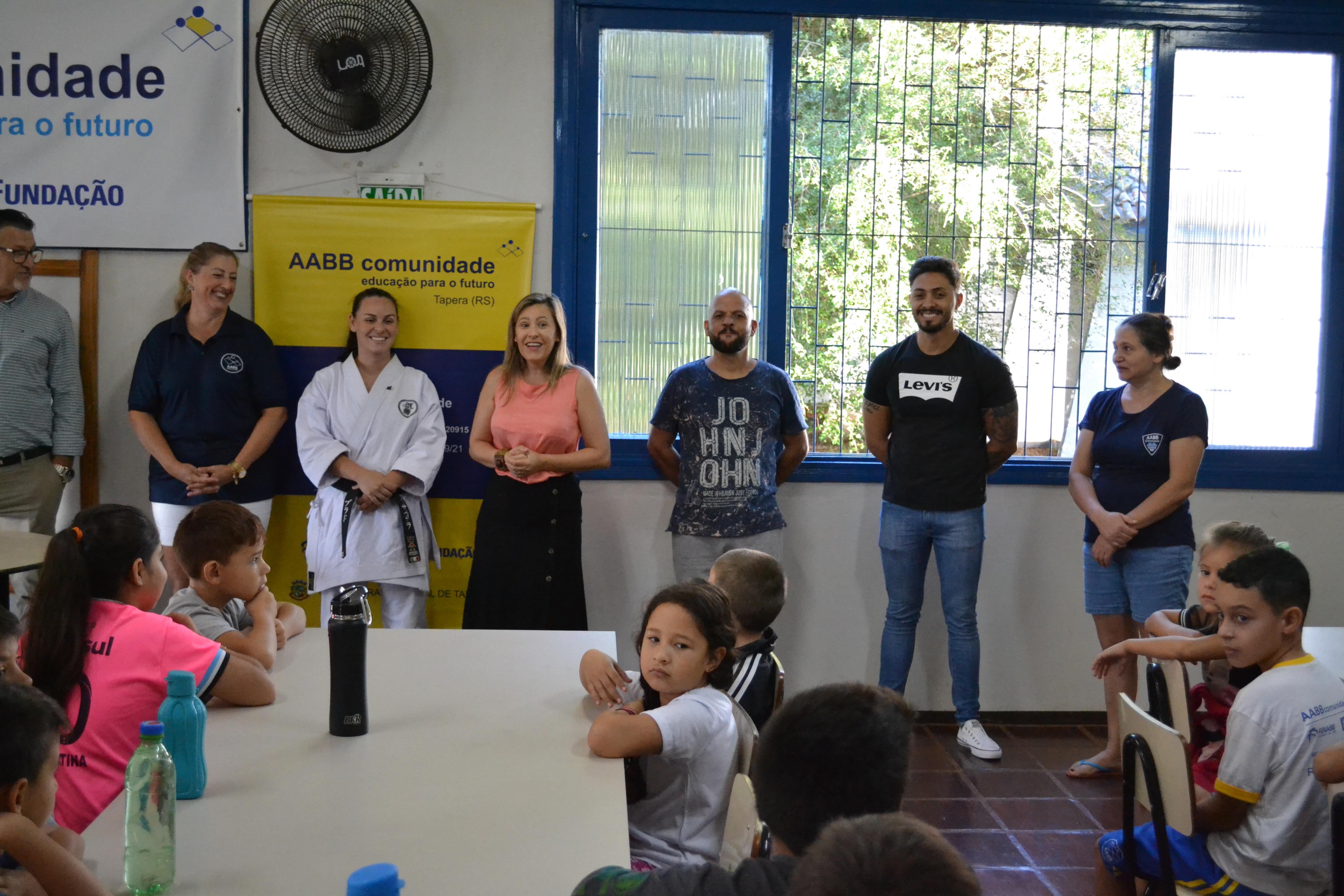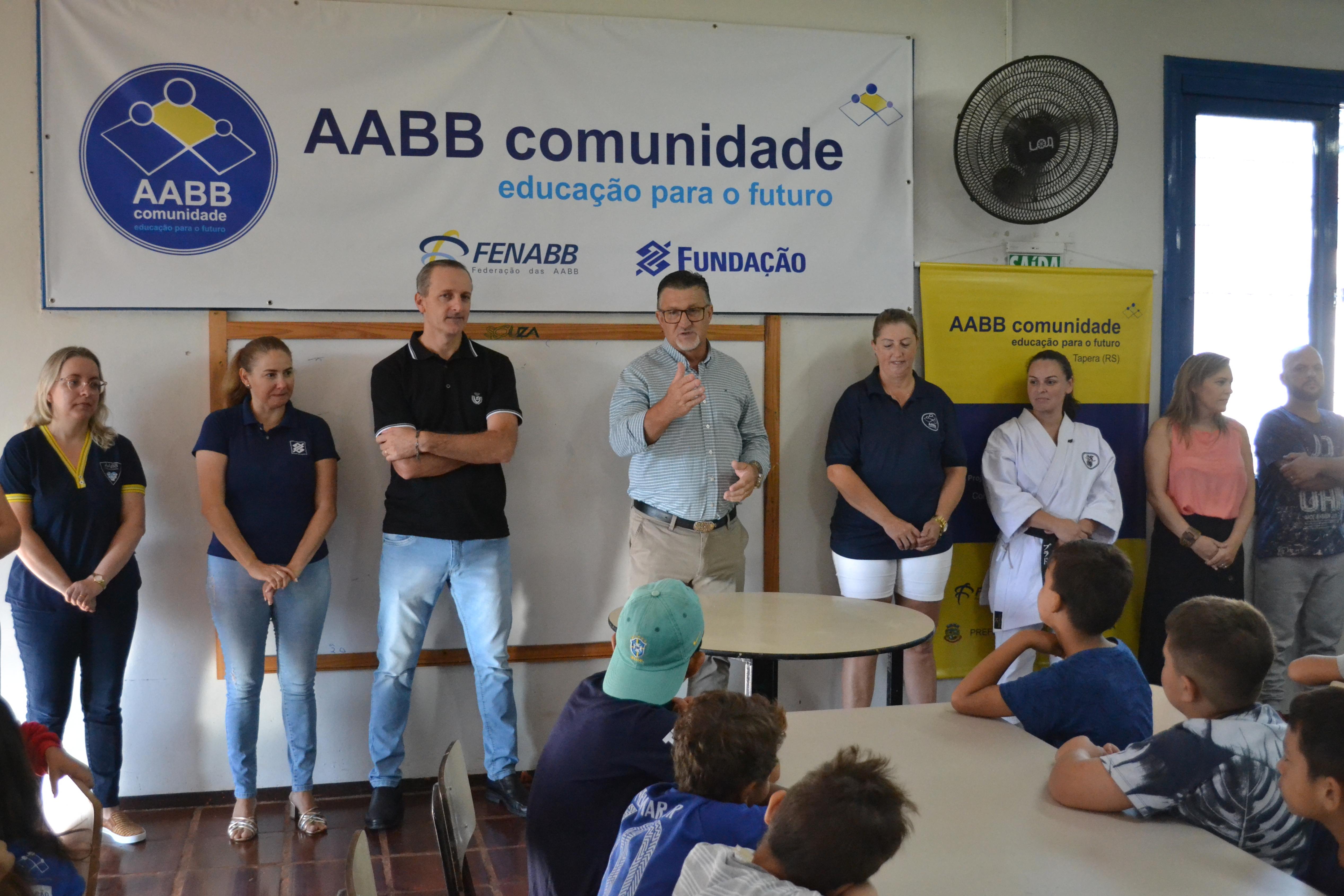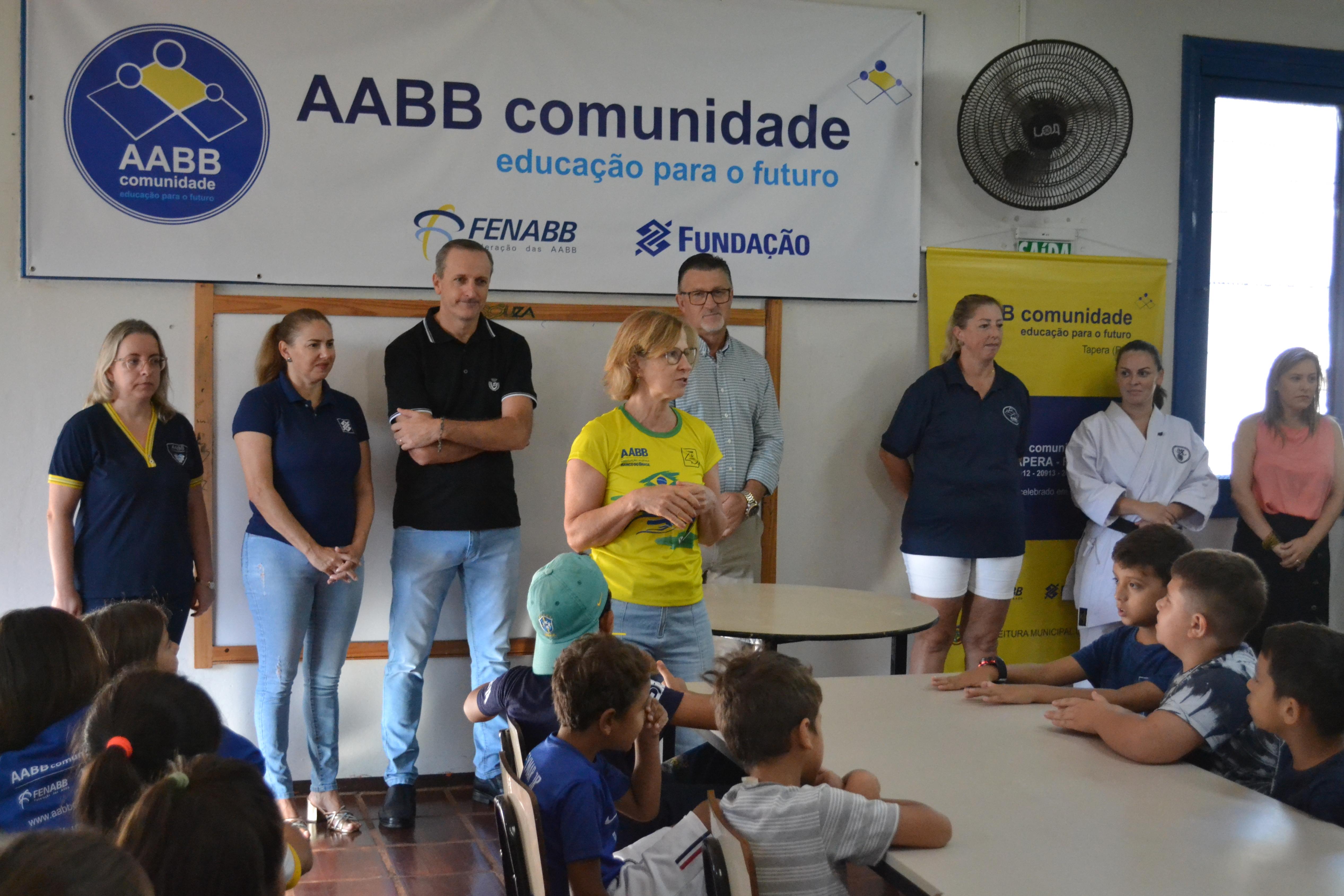 Na manhã de hoje, 20/03/, iniciaram as atividades do Projeto AABB Comunidade 2023, que atende estudantes das escolas municipais de Tapera. A abertura contou com a presença do prefeito, Volmar Helmut Kuhn, secretária de educação, Lucimara Karpe Canova, gerente do Banco do Brasil de Tapera, Anderson Barbizan, coordenadora do projeto AABB Comunidade, Júlia Bervian, de mais representantes do Banco do Brasil e dos professores que participam do projeto.