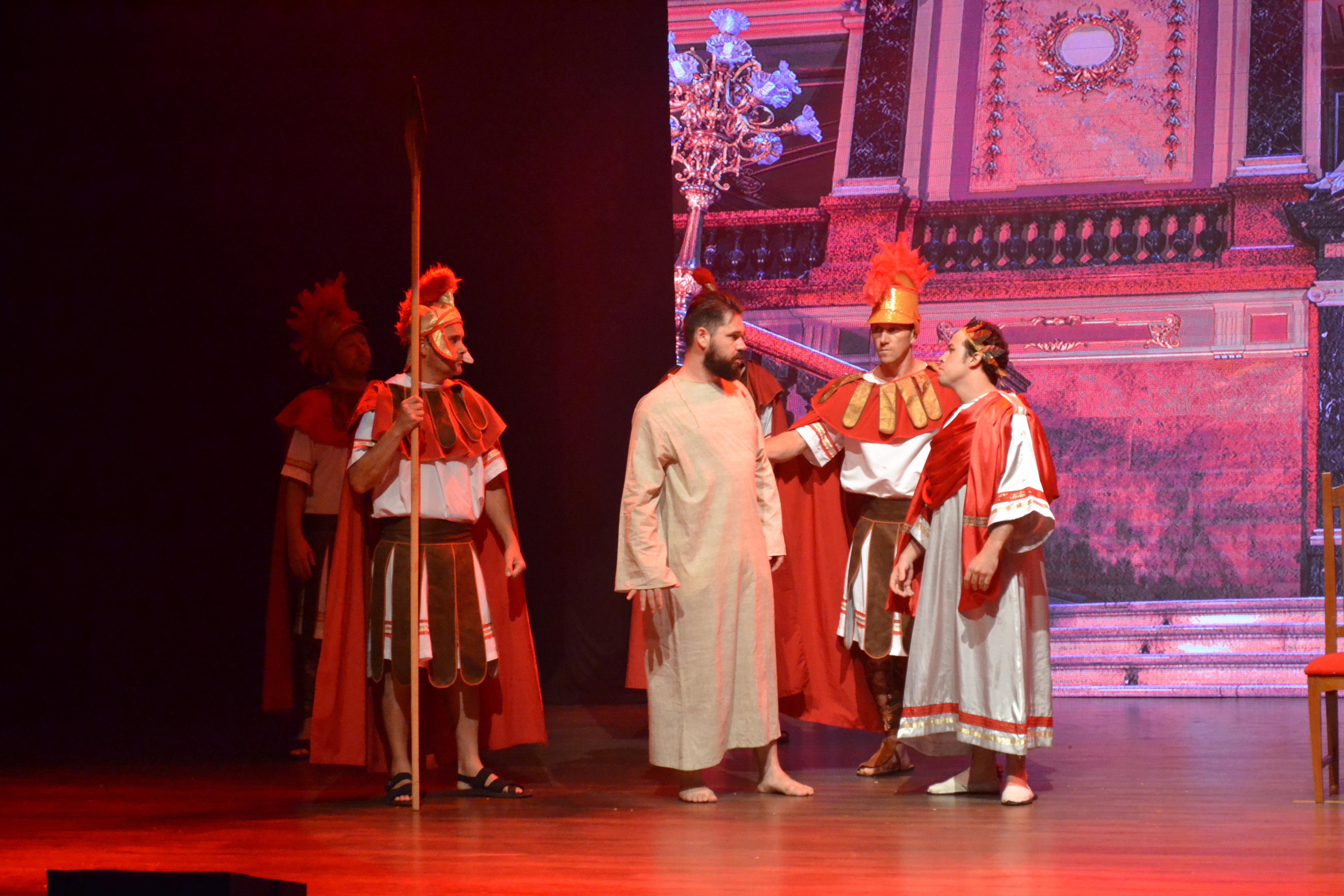 A encenação, “Paixão de Cristo”, aconteceu ontem à noite, 05/04, no auditório do Centro de Eventos em Tapera. O evento contou com a presença de autoridades locais, comunidade taperense e público regional. O público lotou o auditório do Centro de Eventos para prestigiar a encenação teatral que emocionou a todos e ainda arrecadou alimentos. A encenação, que aconteceu em paralelo a 22ª Toca do Coelho, foi apresentada pelo grupo municipal de teatro, Loucos Por Teatro, por integrantes dos projetos oportunizados em parceria com o programa União Faz a Vida e o grupo municipal de artes circenses. O Prefeito, Volmar Kuhn, aproveitou para agradecer o público presente, os envolvidos na realização do evento e destacou a importância do mesmo para a comunidade e Tapera. Enfatizou também, a importância da Páscoa e a mensagem de reflexão que ela deixa para todos.