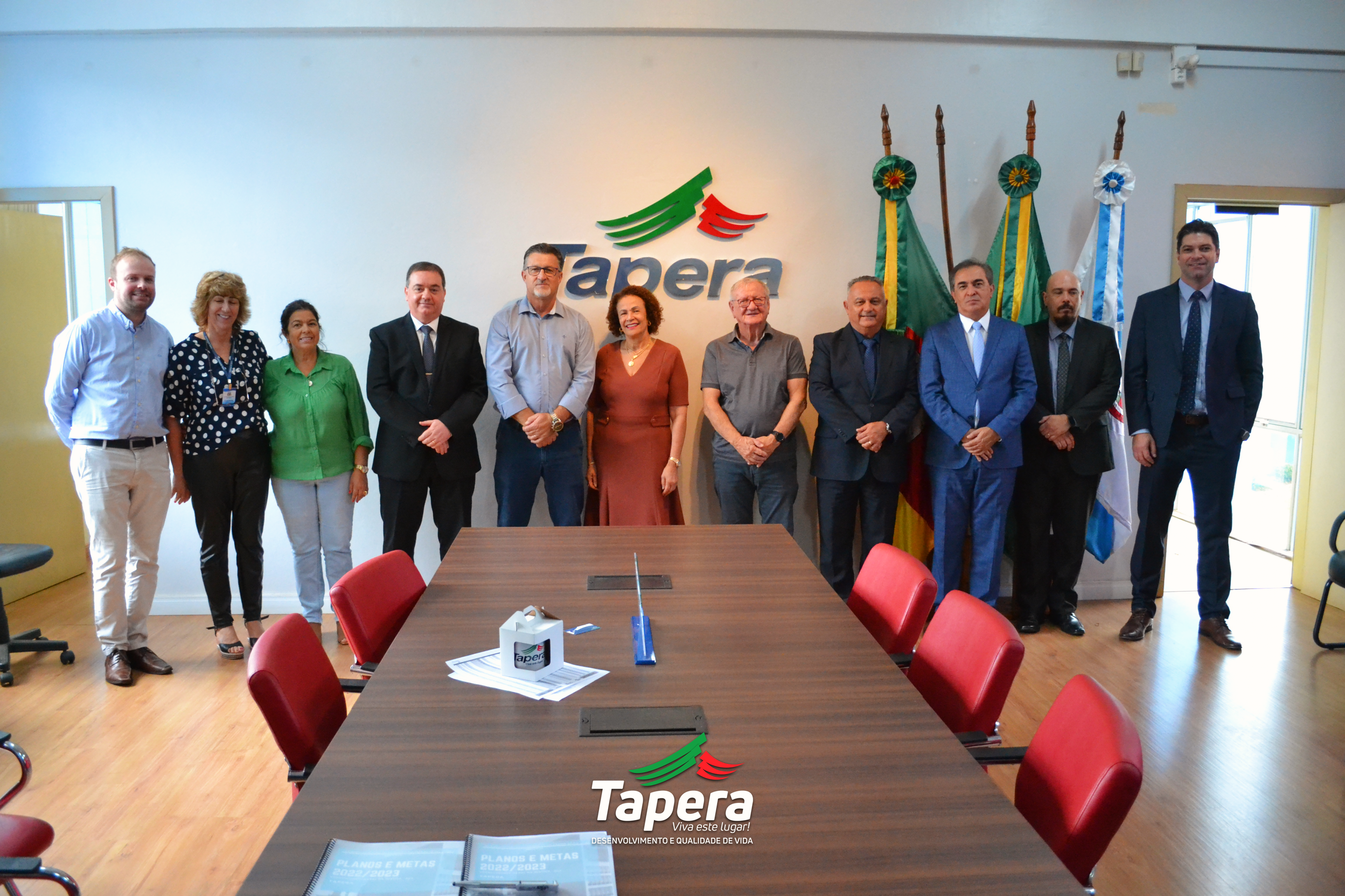 A visita teve como objetivo, renovar os votos de parceria entre os poderes públicos, apresentar ferramentas que estarão disponíveis em breve e realizar a entrega o documento com planos e metas para a Comarca de Tapera no biênio.