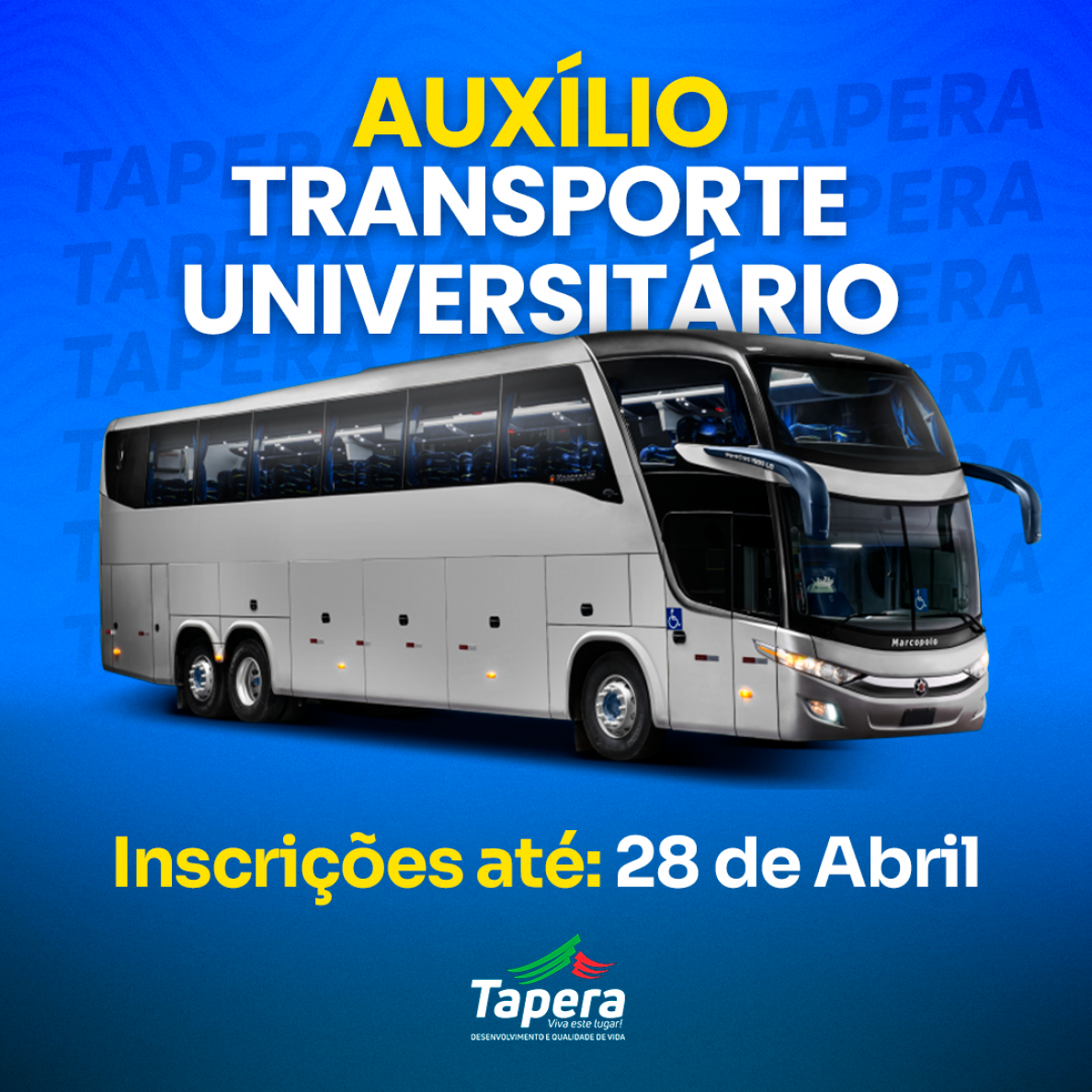 Processo para seleção de estudantes matriculados e cursando o Ensino Superior em Instituições públicas ou privadas e estudantes de curso de nível profissional técnico (médio e superior) que necessitem auxílio de recursos para deslocamento intermunicipal, de Tapera para universidades em outros municípios da região.