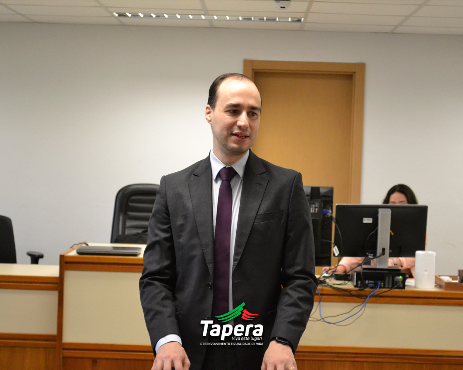 Na manhã de hoje, 24/04, ocorreu na sala do Tribunal do Júri, no Fórum de Tapera, a solenidade de apresentação do novo juiz titular da Comarca de Tapera, Felipe Magalhães Bambirra, que representará outros três municípios que fazem parte da mesma, Colorado, Lagoa dos Três Cantos e Selbach.