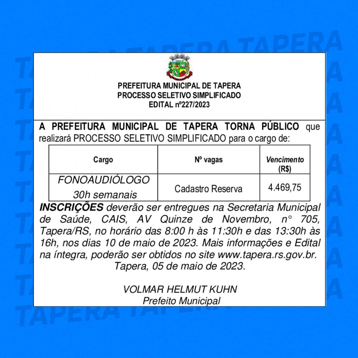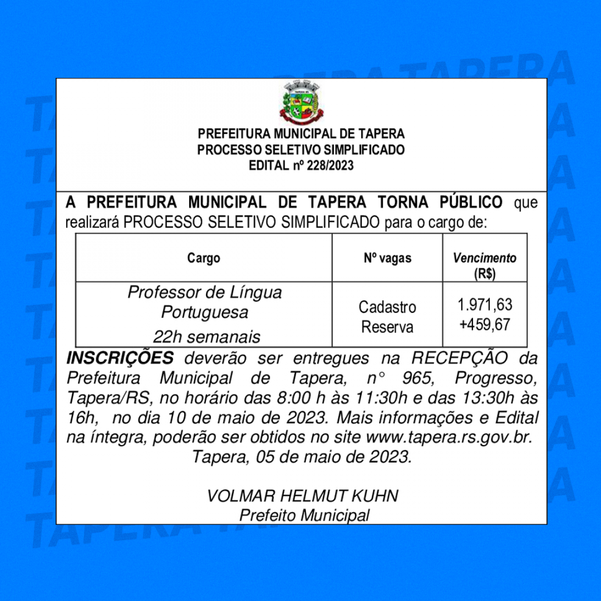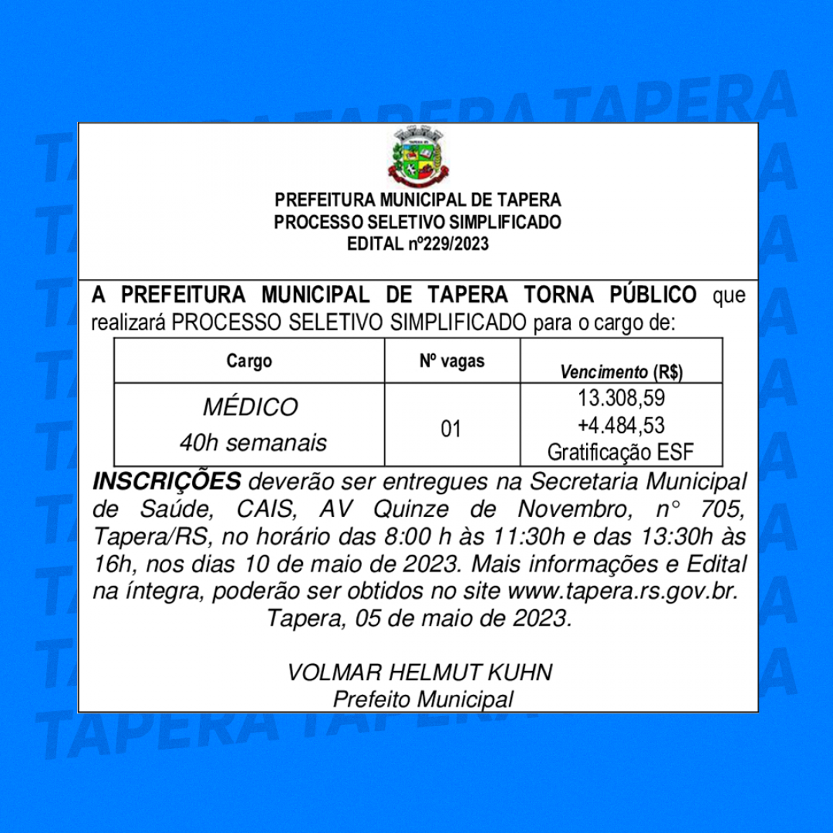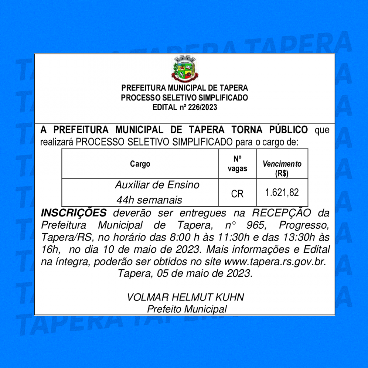 Aberta as inscrições para os processos seletivos simplificados. Para mais informações, ( CLIQUE AQUI ) ou ligue: 3385-3300.