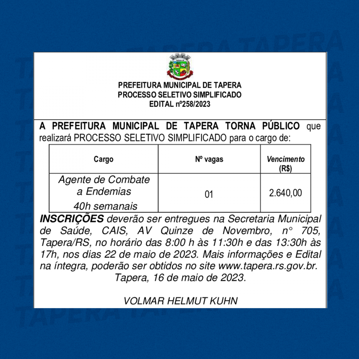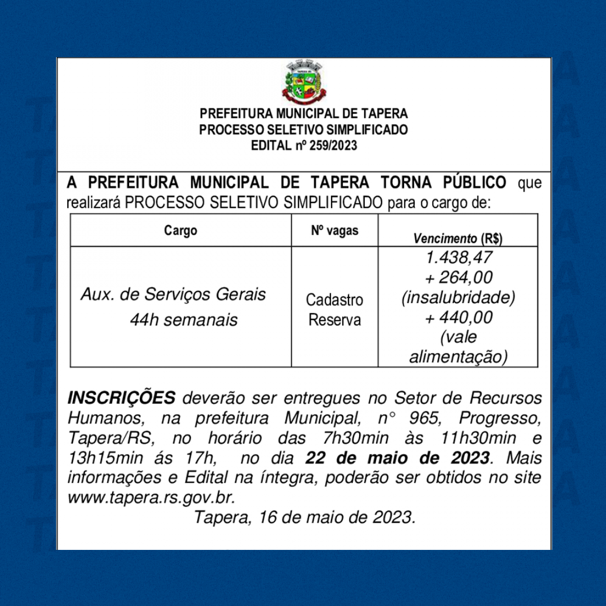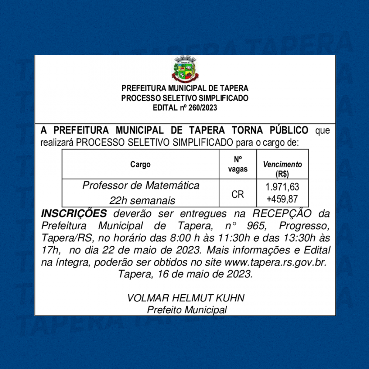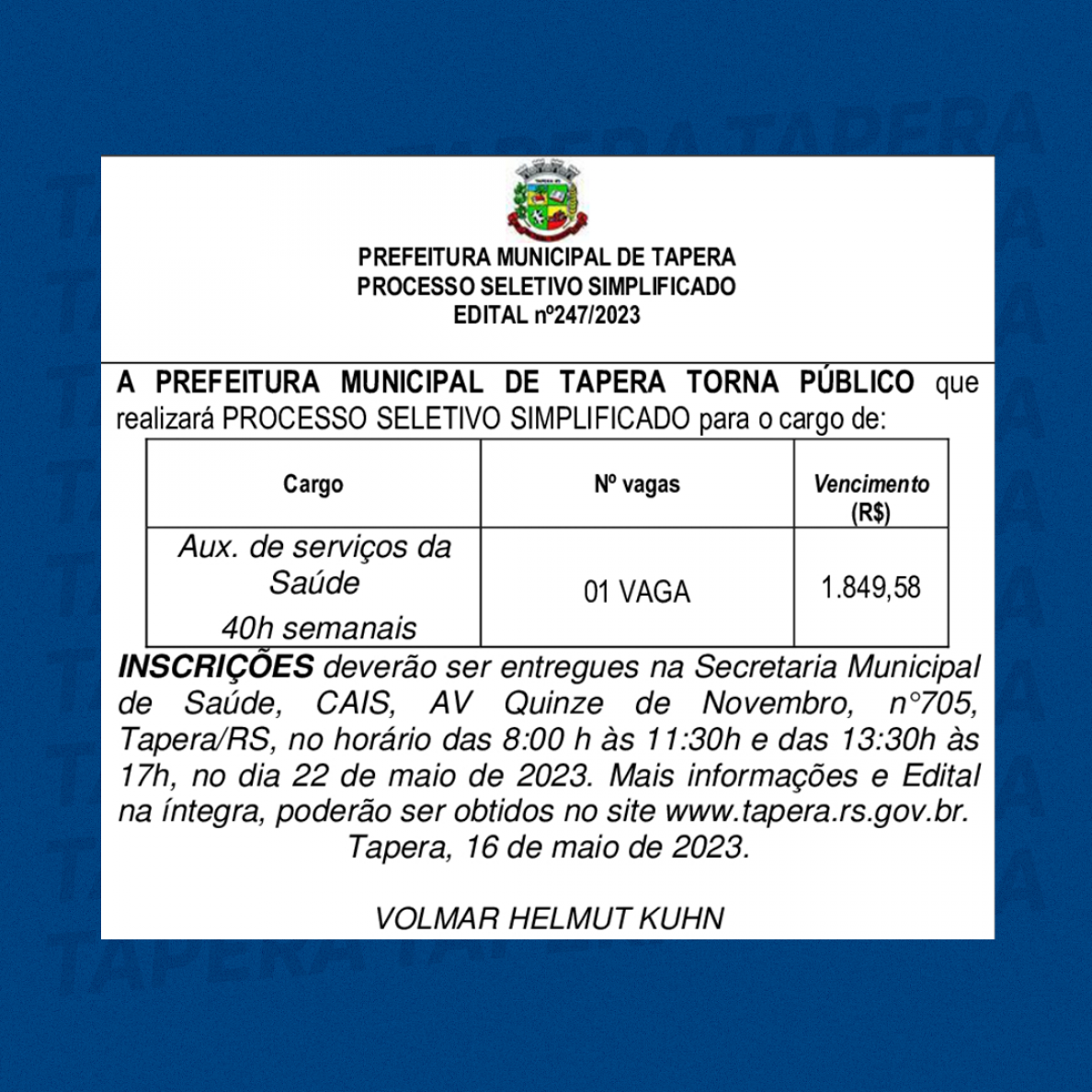 Aberta as inscrições para os processos seletivos simplificados. Para mais informações, CLIQUE AQUI ou ligue: 3385-3300.