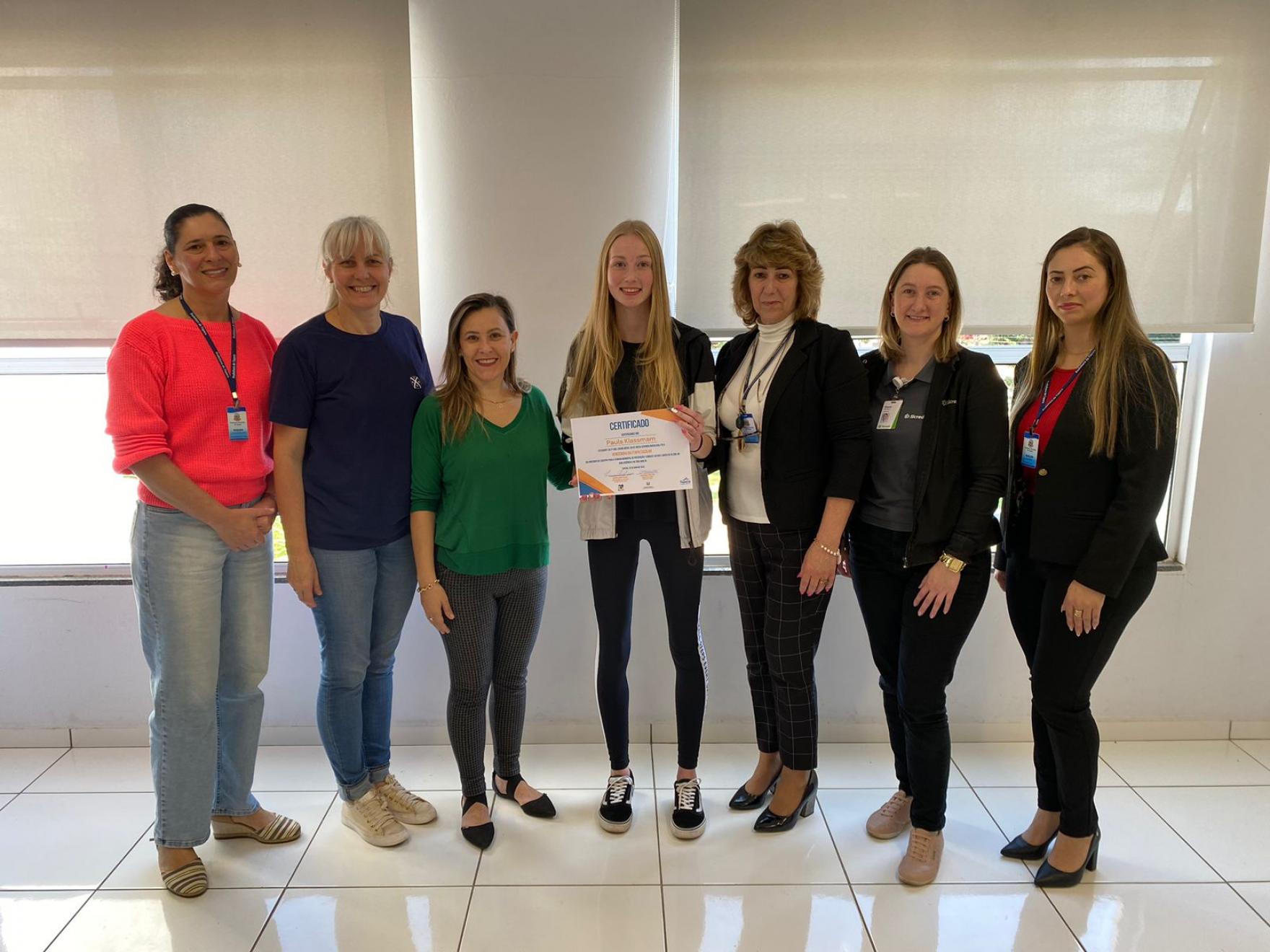 Hoje, 23/05, às 13h30min no Centro de Eventos, reuniu-se as escolas e estudantes que participaram do Concurso e venceram a etapa escolar para a logotipo a ser instituída na Semana Municipal de Prevenção e Combate ao Uso e Abuso de Álcool na Adolescência e na Vida Adulta. Sendo estes: Joana Tariga Florêncio – EEEM Dionísio Lothário Chassot Pedro Comin – CE Preparando Gerações Paula Klassmann – IEE Nossa Senhora Imaculada Gabriela Rodrigues Vieira – EMEF Francisca Cerutti Andressa Rosati da Rosa – EMEF Presidente Costa e Silva Andressa de Matos Weizenmann – EMEF João Batista Mocelin Na etapa Municipal, a comissão seguiu o regulamento e os critérios de avaliação, conjuntamente, e a ganhadora foi a estudante Joana Tariga Florêncio, estudante da Escola Estadual Dionísio Lothário Chassot, da turma do 9º ano Ensino Fundamental e o professor orientador deste trabalho foi José Anildo Brum. Parabéns as escolas e estudantes que envolveram-se nesta atividade tão significativa em prol de uma sociedade melhor e mais saudável.