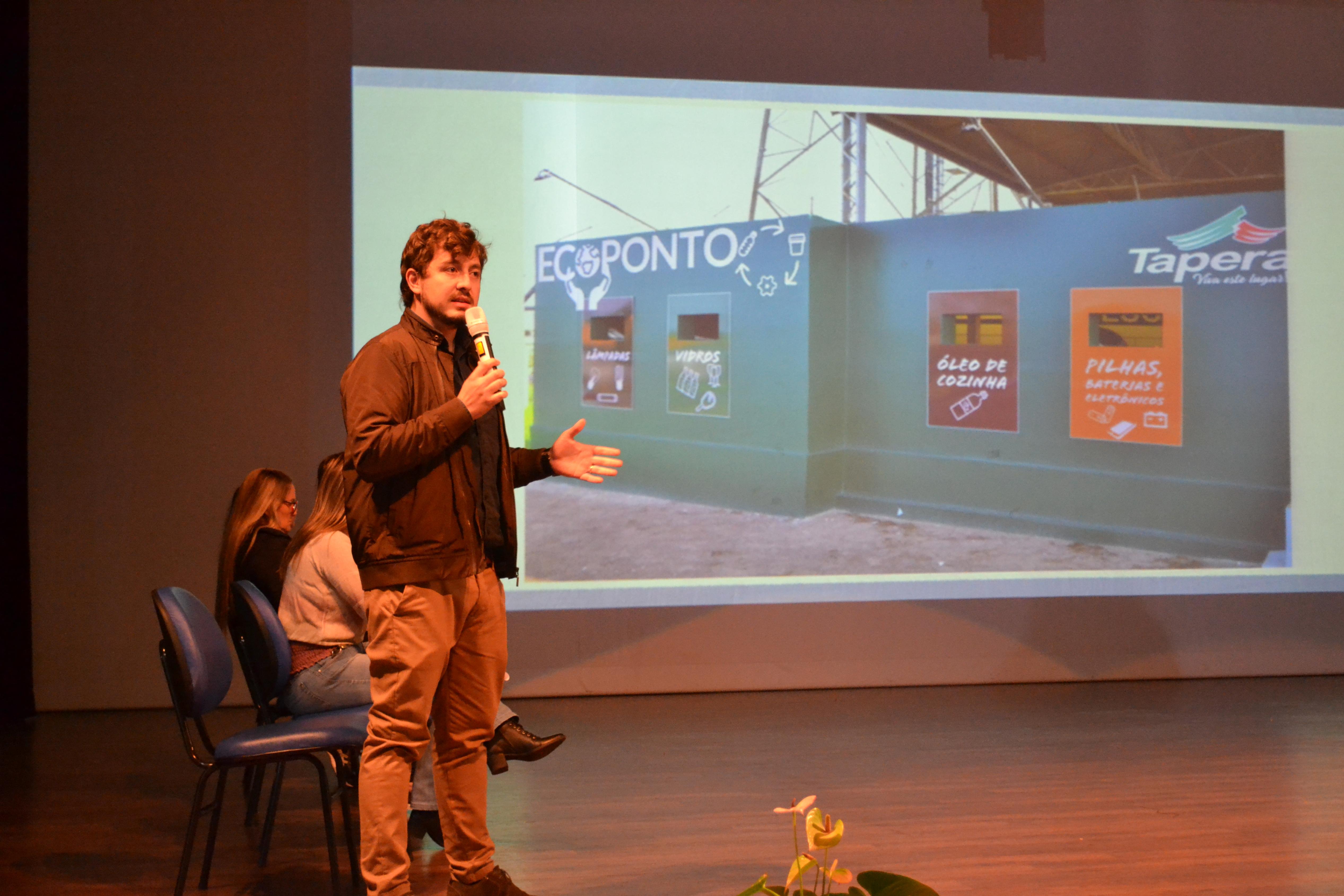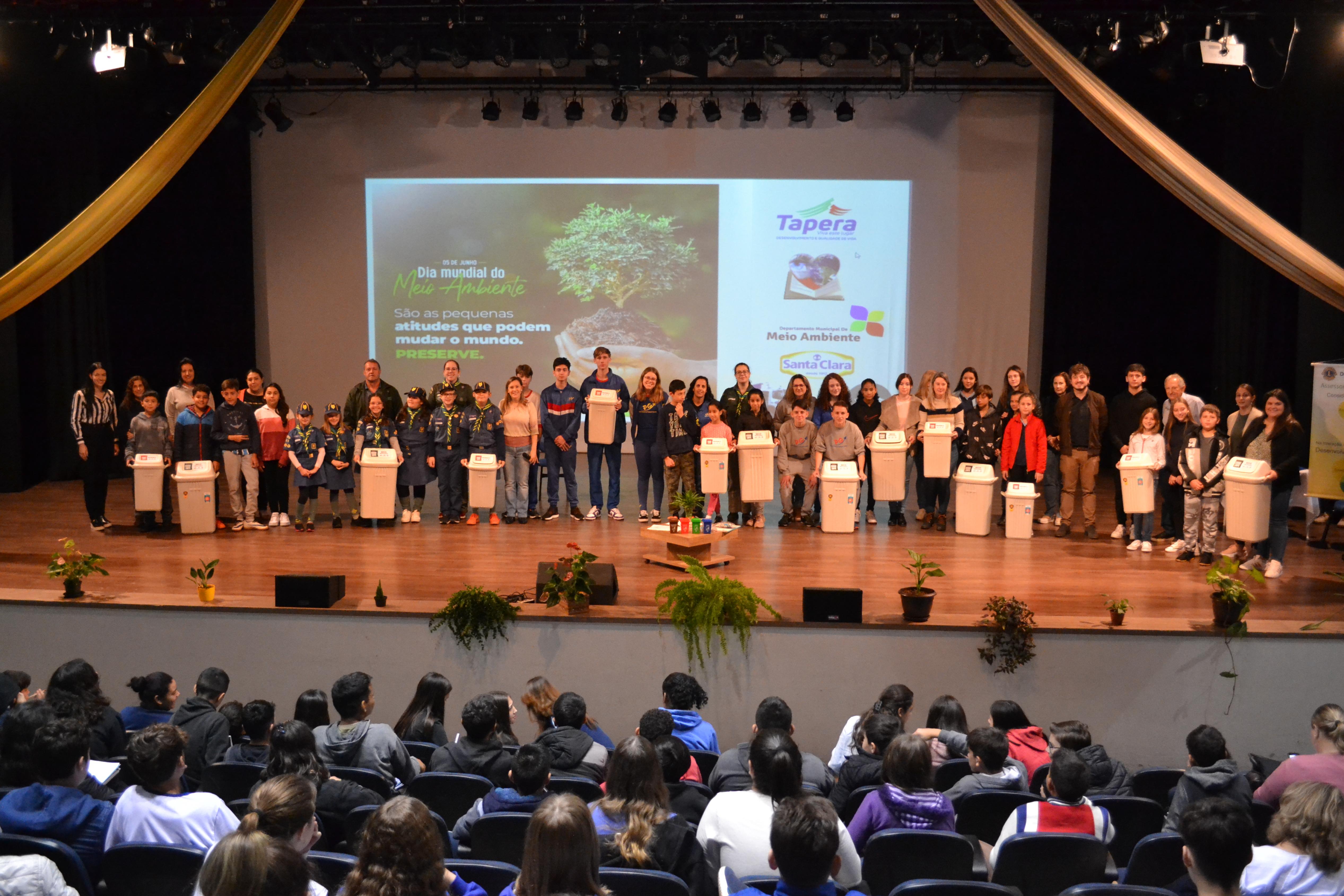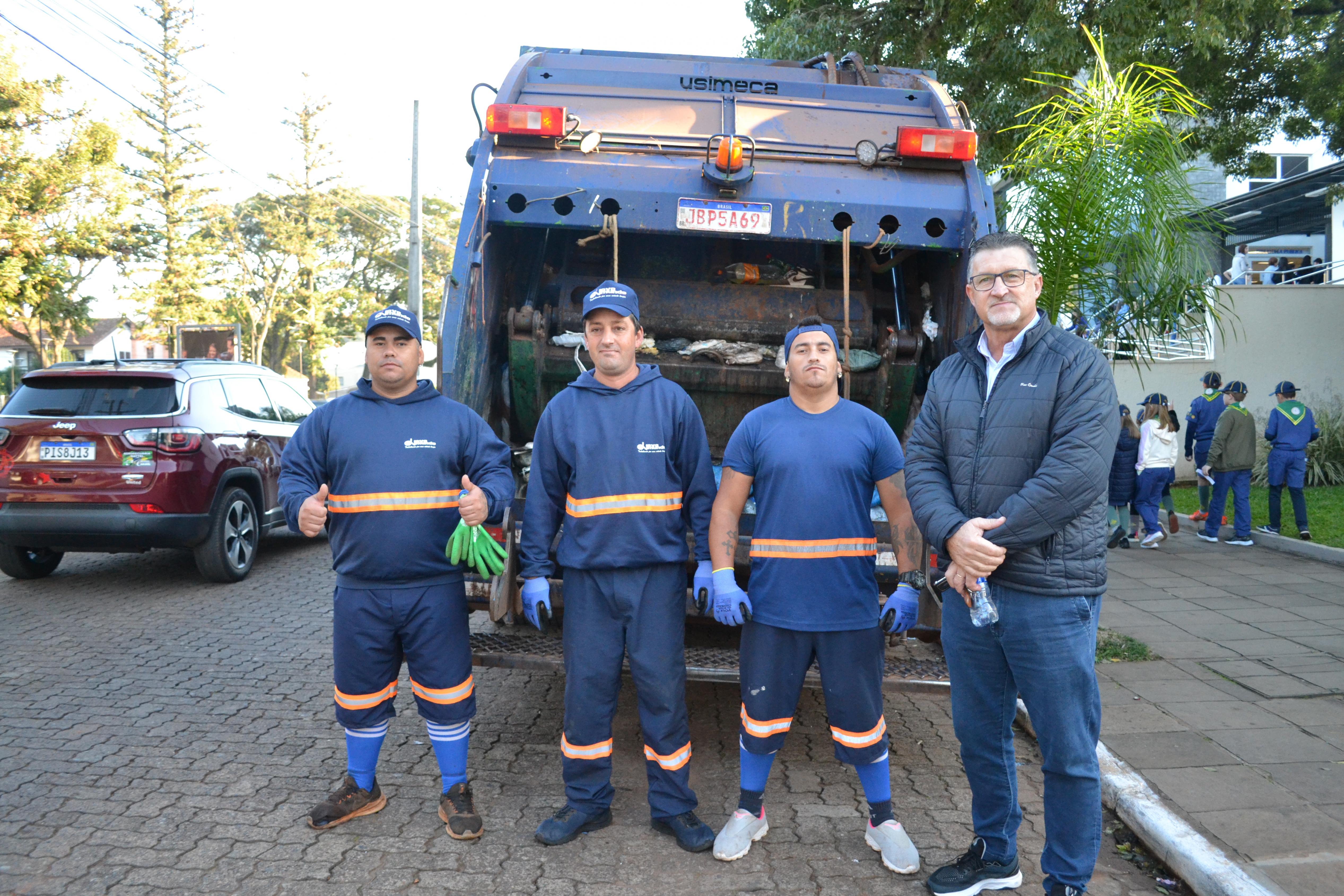 O evento iniciou-se com os alunos podendo ver de perto como é realizada a coleta de resíduos e a prensagem dos mesmos pelos caminhões da empresa Novo Mundo. O Prefeito, Volmar kuhn, fez uso da palavra para destacar a importância do projeto e de ações para que possamos garantir um futuro melhor. Em seguida, foram apresentados os projetos ambientais realizados pelas escolas do município, através do Projeto: Cidade Limpa, onde as escolas ganharam um kit lixeira, para resíduos recicláveis e outra para orgânicos.
