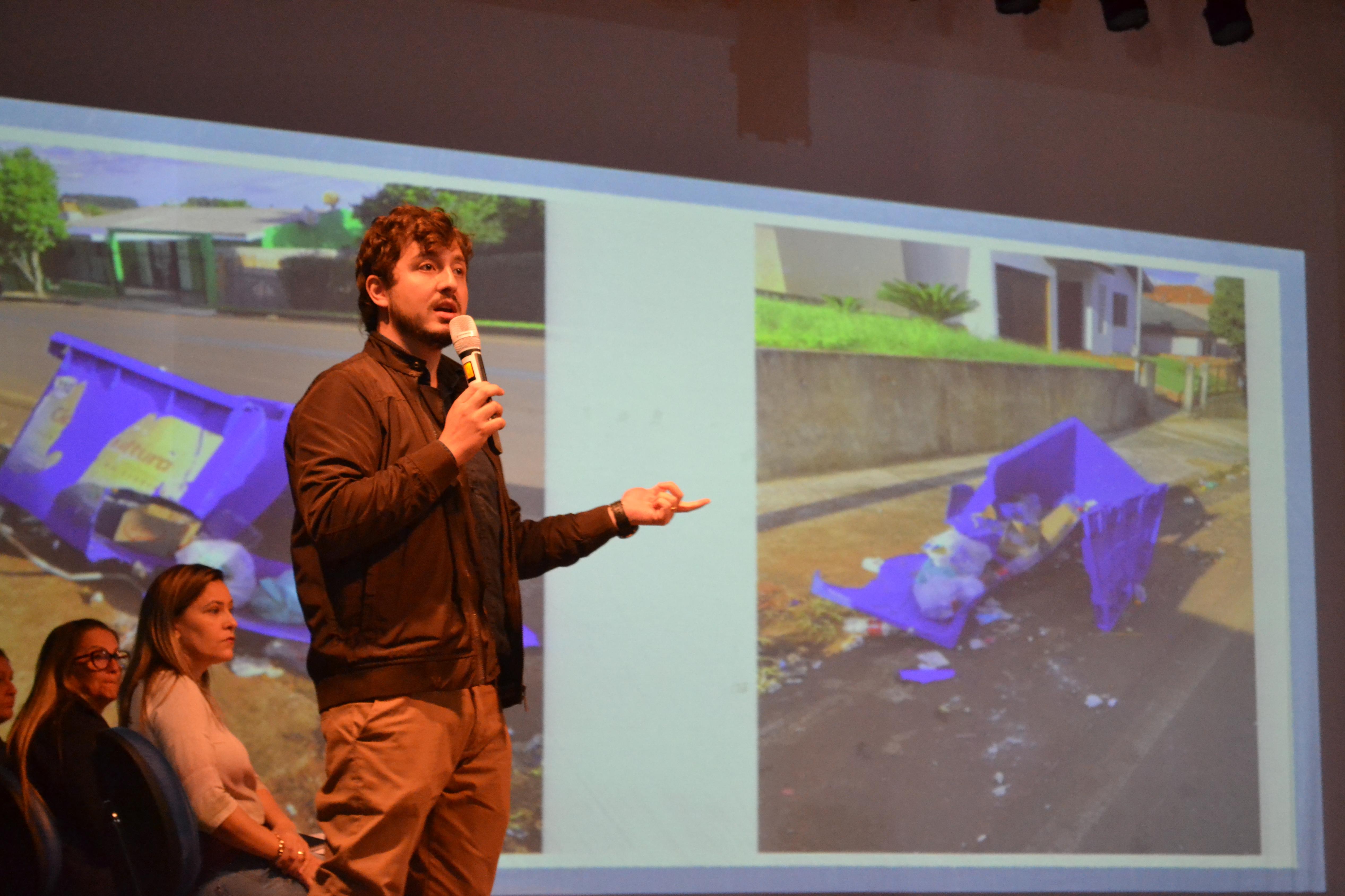 Logo após, o secretário Elias pode apresentar dados sobre a coleta de resíduos no município, entre eles, a média do mês de março que foi de 8,18 toneladas ao dia, sendo possível a reciclagem de apenas 6%, ou seja, 94% sendo descartado para o aterro por não estar separado, descartado ou embalado corretamente. Já no mês de abril, foram coletados 7,5 toneladas ao dia, sendo possível reciclar 8% deste total. O secretário ainda apresentou casos diários como, contentores quebrados, com resíduos não embalados e até casos de sacos de resíduos sendo colocados em cima ou ao lado, mesmo os contentores estando vazios.