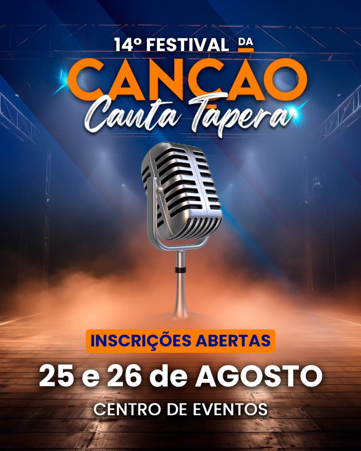 Inscrições abertas para o 14º Festival da Canção de Tapera, que acontecerá nos dias 25 e 26 de agosto no Centro de Eventos