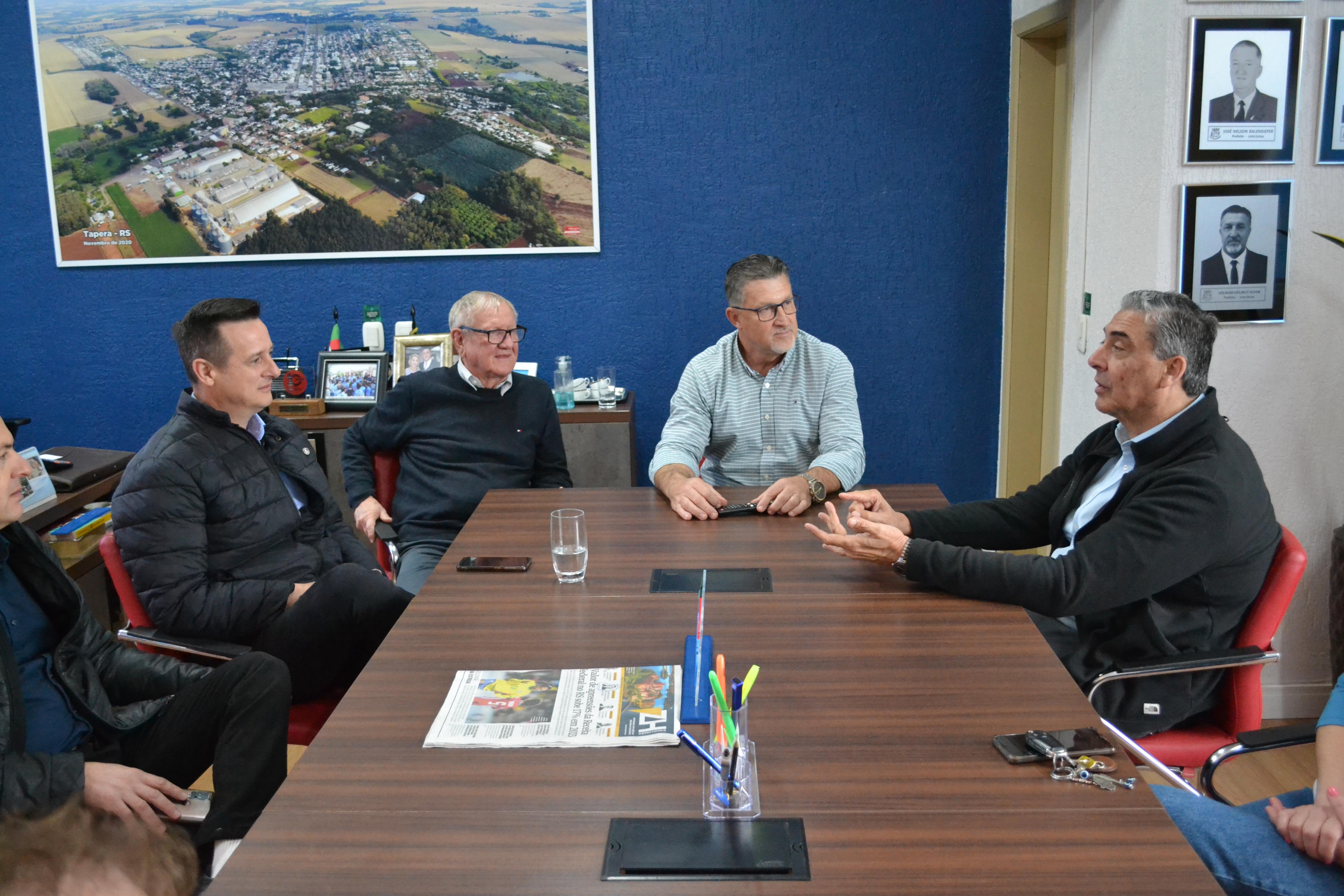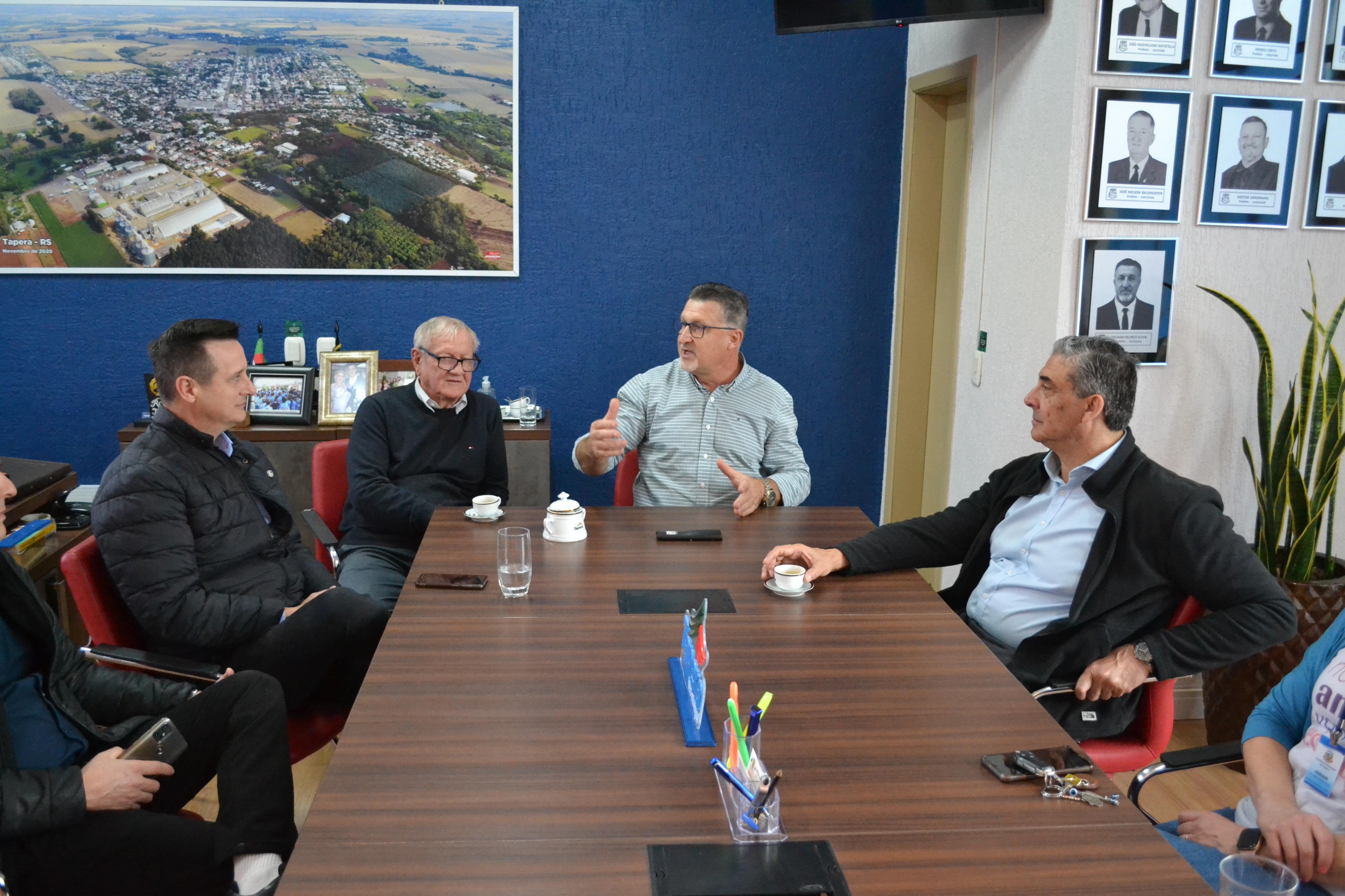Na manhã de hoje, 26/07, o Prefeito Volmar Kuhn e o Vice-Prefeito Osvaldo Henrich, receberam a visita do Secretário da Agricultura e Pecuária, Giovani Feltes, e do Diretor-adjunto, Clair Kuhn, onde puderam conversar sobre o setor agrícola, pecuário e assuntos do interesso do município.