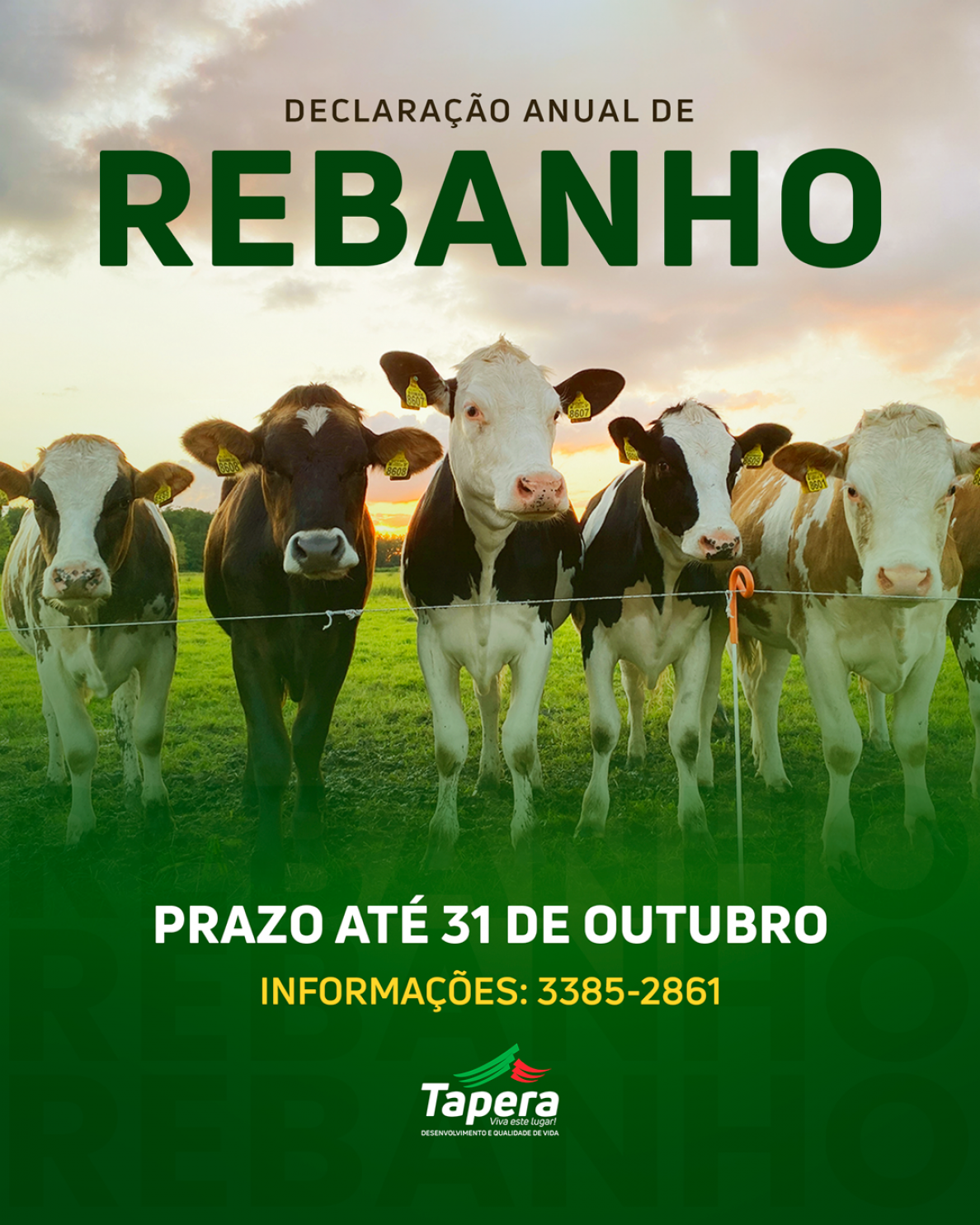 Os produtores do município de Tapera deverão comparecer à Inspetoria Veterinária, o prazo é até 31 de outubro.