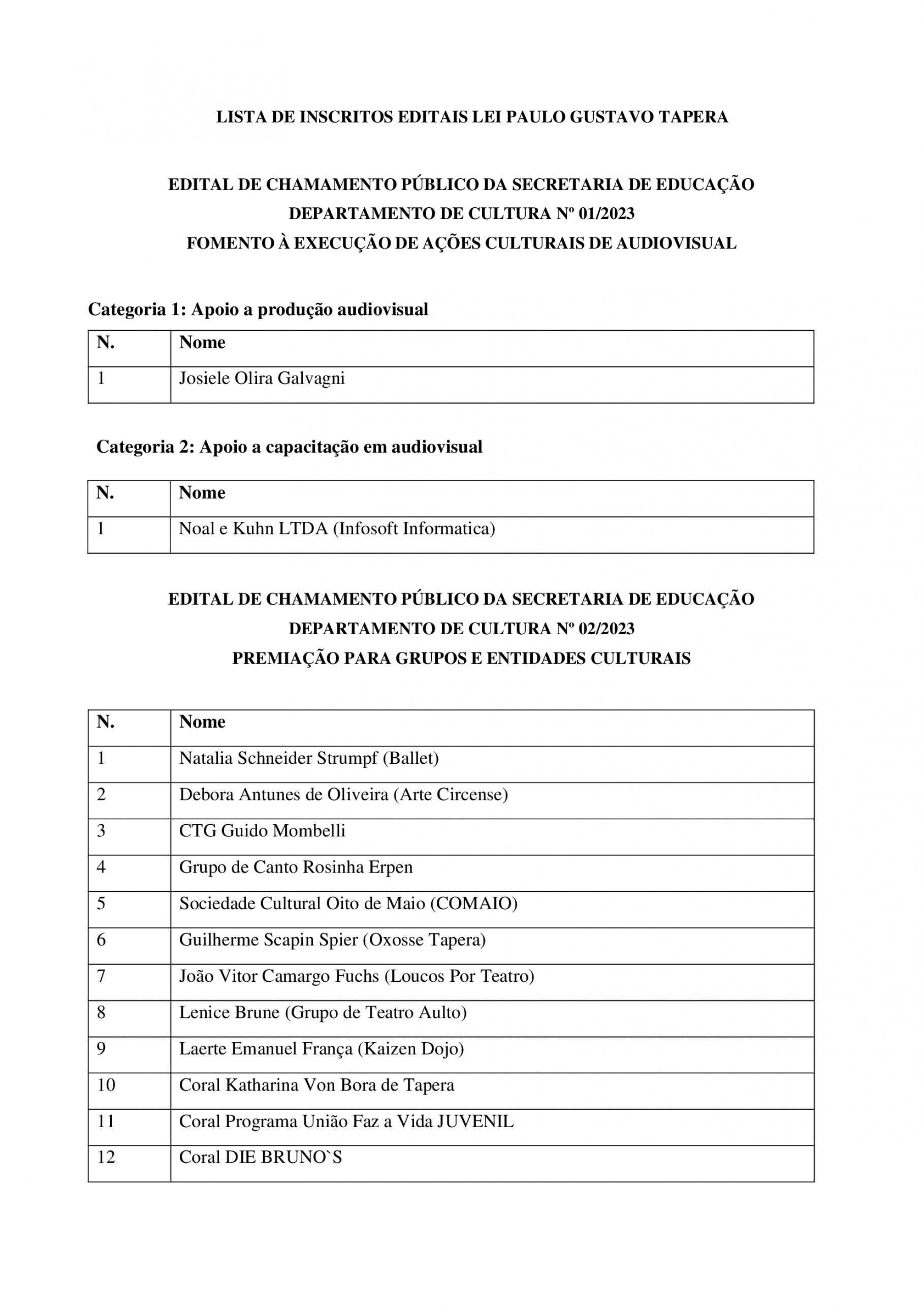 Edital De Chamamento Público Da Secretaria De Educação, Departamento De Cultura Nº 01/2023 - Fomento à execução de ações culturais de audiovisual