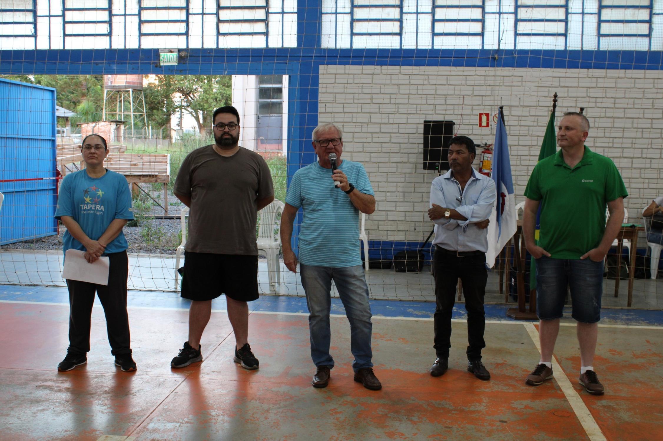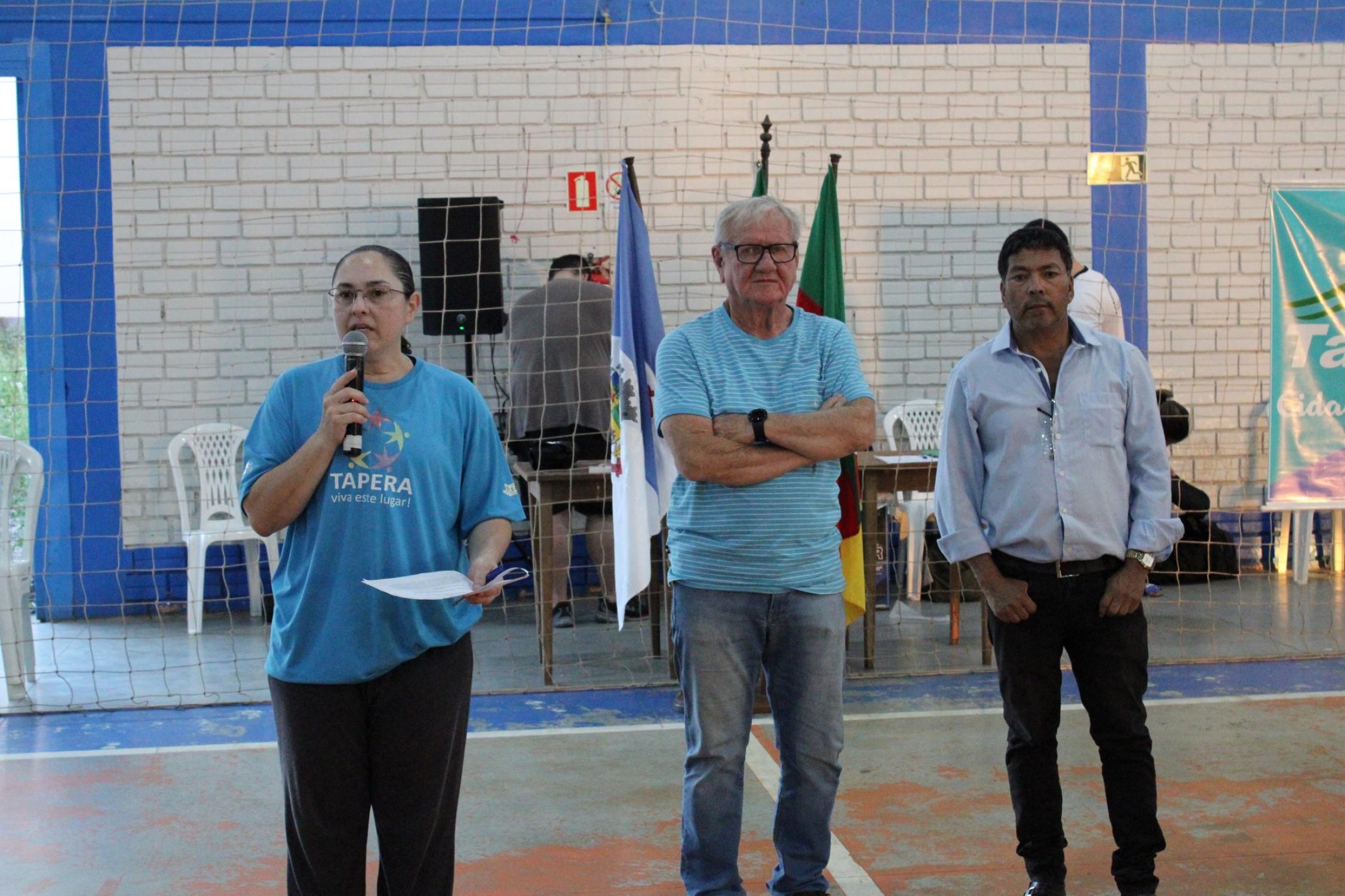 Estiveram presentes o Prefeito em exercício, Osvaldo Henrich Filho, a Diretora do Departamento de Desporto e Lazer, Elessandra Piccolli, Diretor de Cultura, Adriano Lima, Gerente do Sicredi Tapera, Igor Valentin Grahl, Vereador, Joel Alves dos Santos e comunidade em geral.