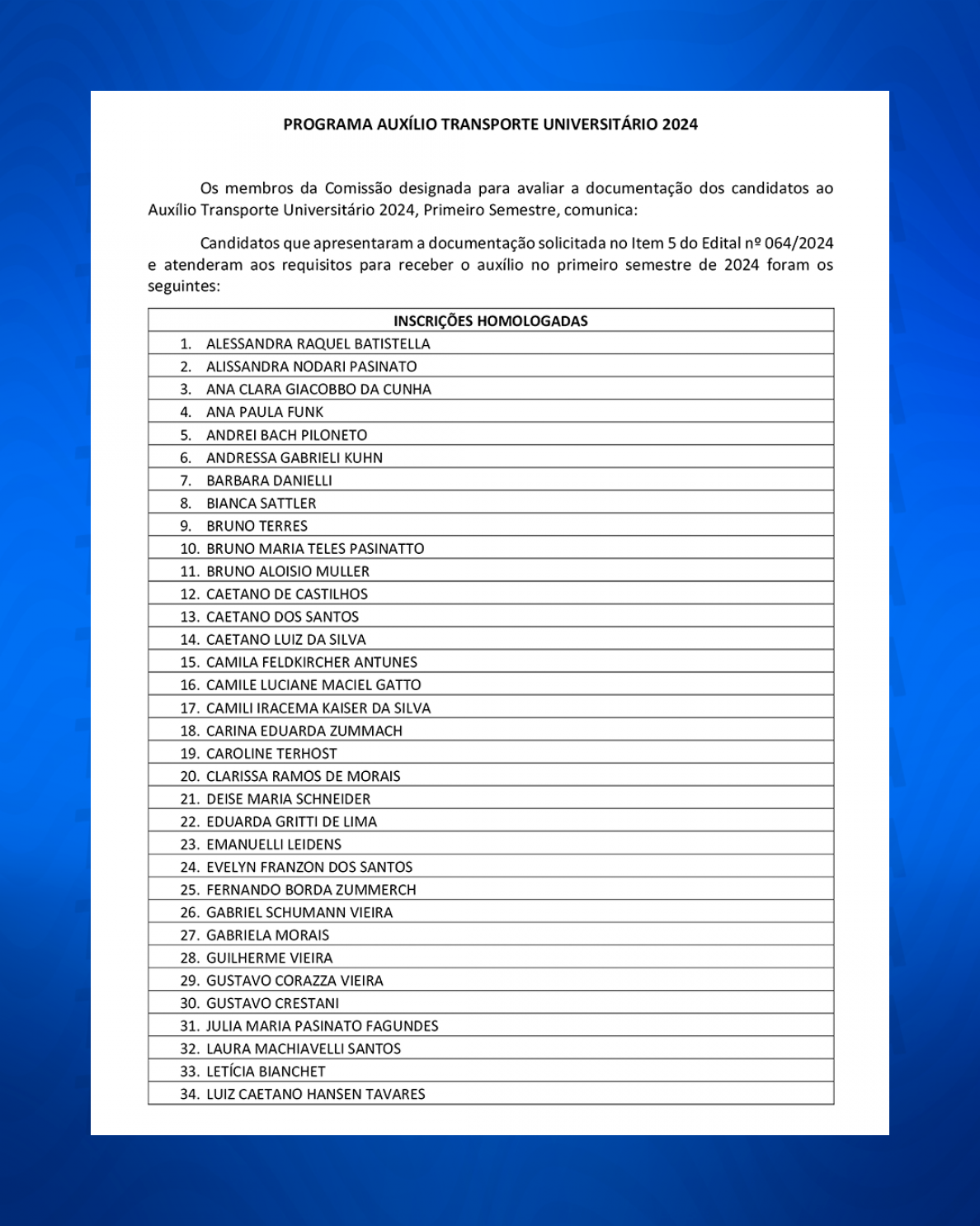 RESULTADO DO AUXÍLIO TRANSPORTE UNIVERSITÁRIO 2024RESULTADO DO AUXÍLIO TRANSPORTE UNIVERSITÁRIO 2024