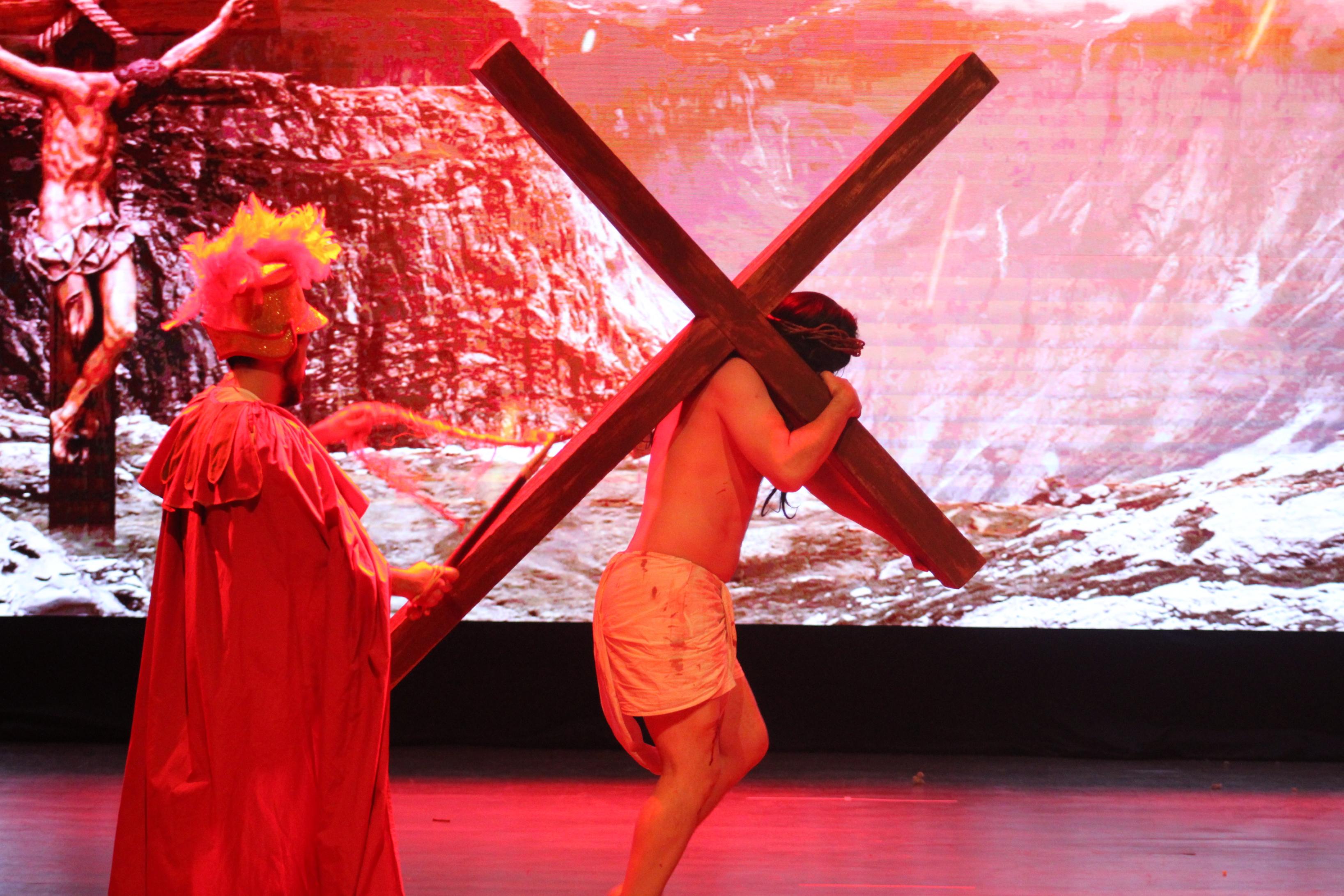 O público lotou o auditório do Centro de Eventos para prestigiar a encenação teatral que emocionou a todos e ainda arrecadou alimentos. A encenação, que aconteceu em paralelo a 23ª Toca do Coelho, abordou sobre o verdadeiro significado da Páscoa, com muitas cenas emocionantes e intensas, além de músicas religiosas.