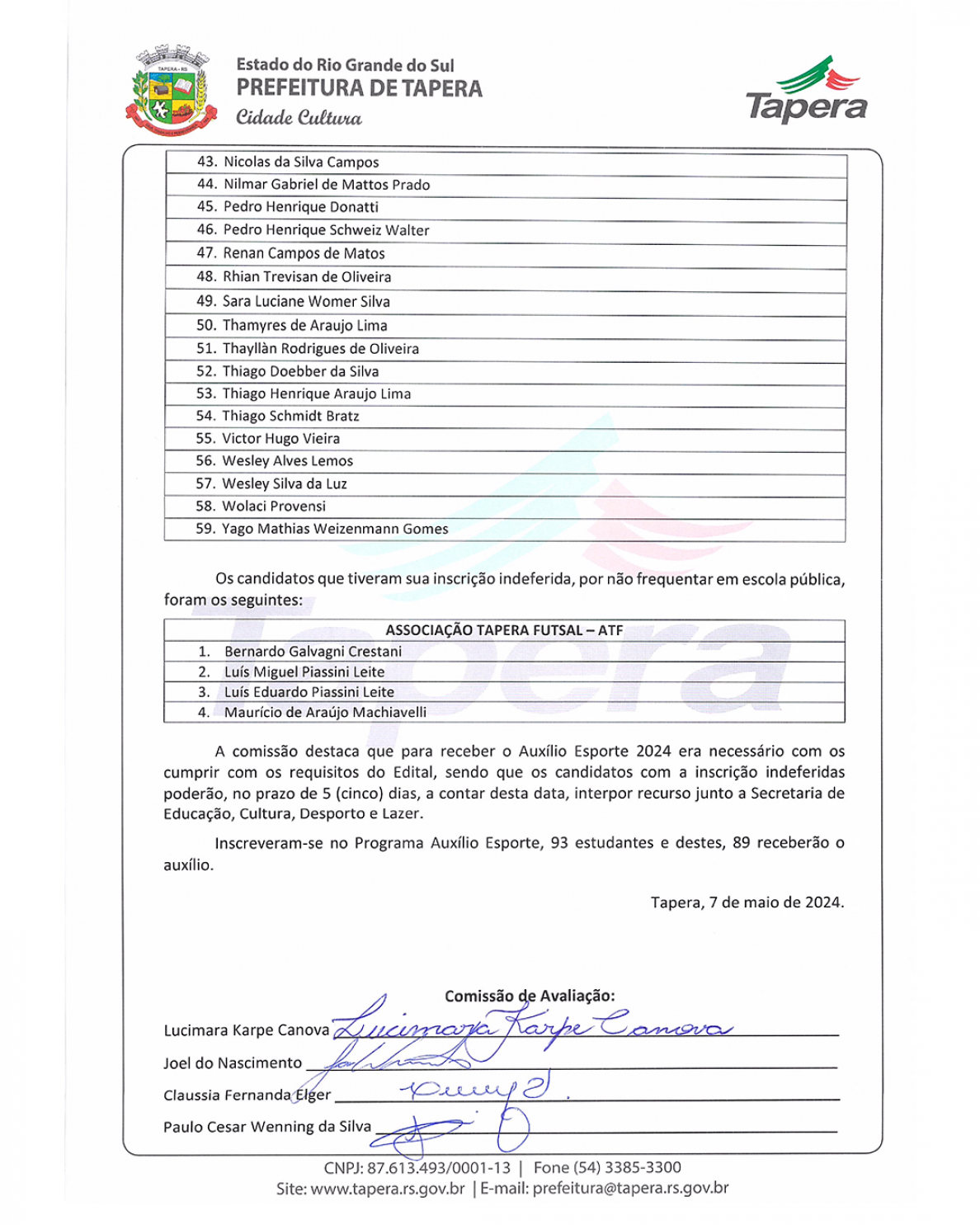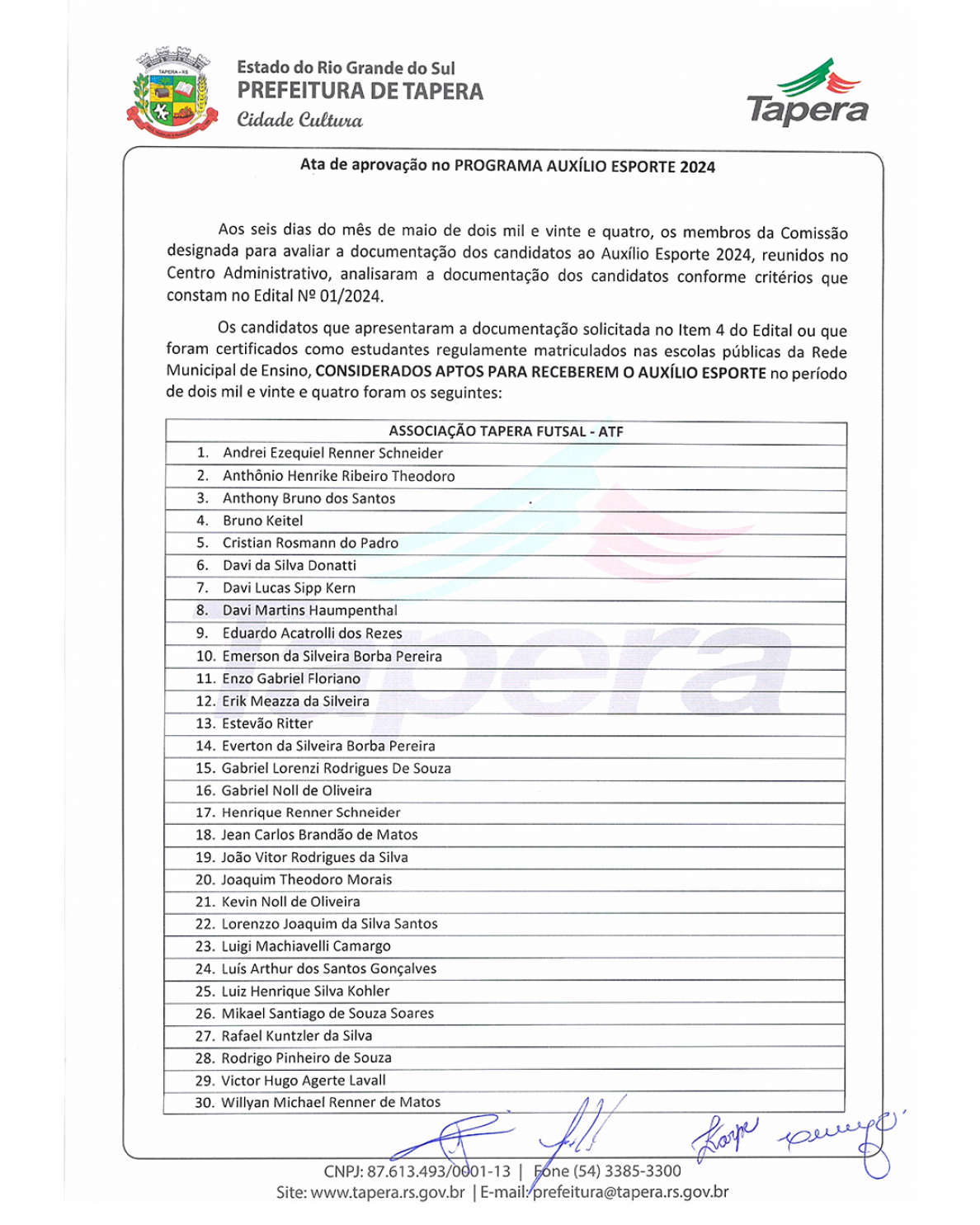 Ata com os nomes dos beneficiários, disponível no anexo abaixo.